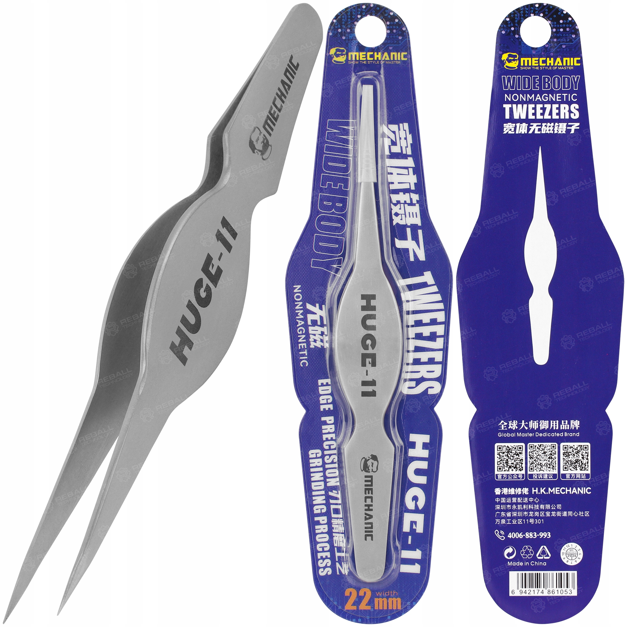 SZEROKA PRECYZYJNA PINCETA PĘSETA PENSETA MECHANIC HUGE-11 SERWISOWA
