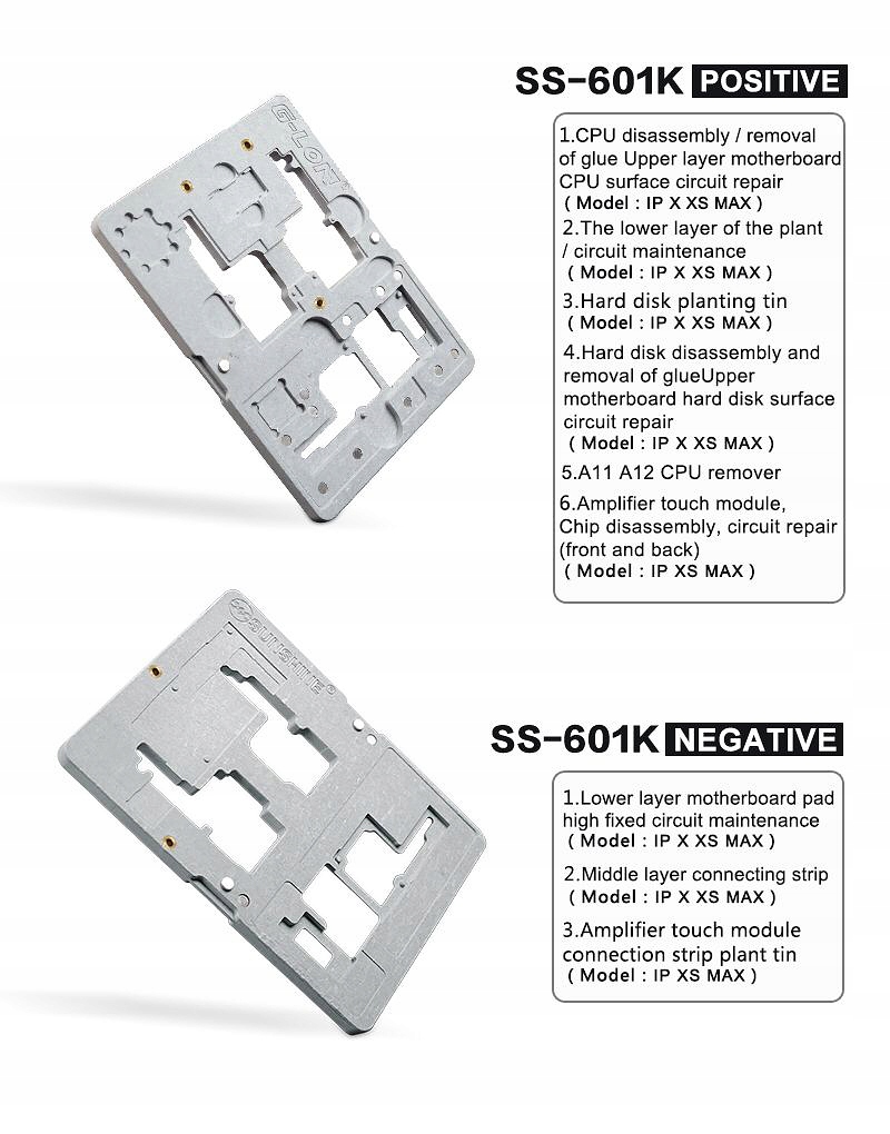 Dwustronna platforma naprawcza SS-601K przeznaczona jest do wszelkich napraw urządzeń iPhone X / XS / XS MAX w zakresie: