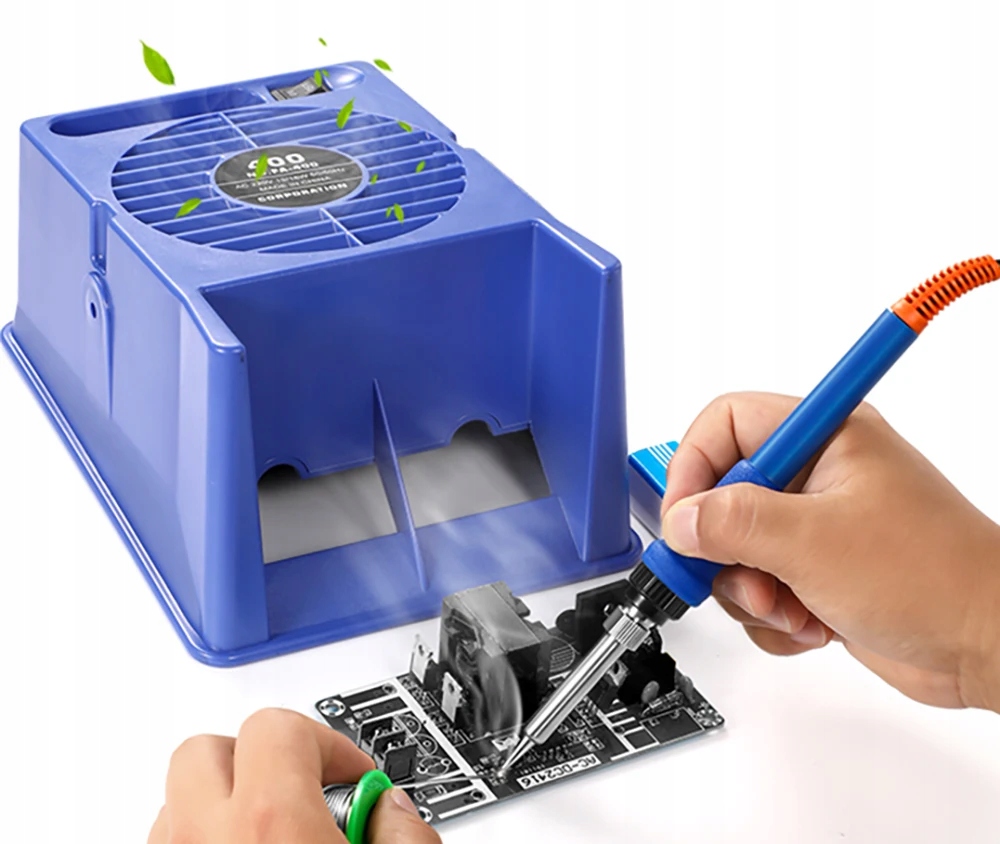 Zainstalowany filtr węglowy eliminuje ze stanowiska pracy szkodliwe opary lutownicze przez co poprawia komfort i bezpieczeństwo pracy.