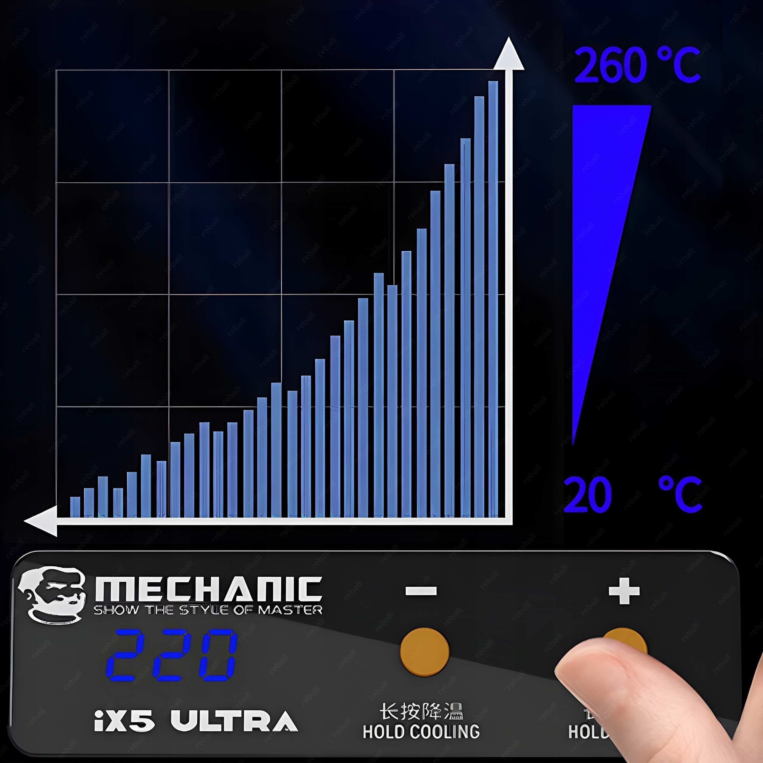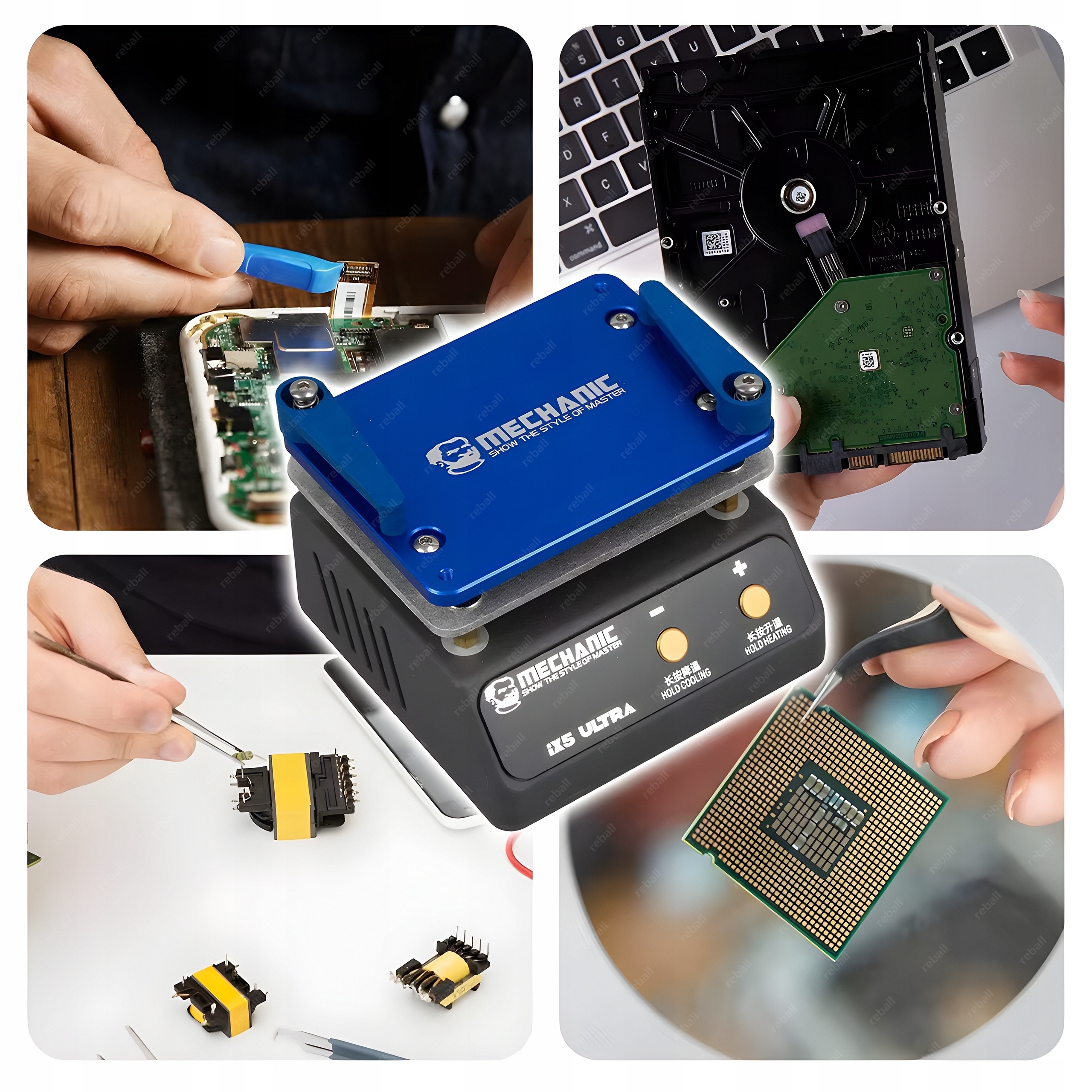 Uniwersalny podgrzewacz Mechanic iX5 ULTRA przeznaczony jest m.in do lutowania rozpływowego diod LED, podgrzewania ekranów LCD oraz rozpływu lutowia na układach BGA.