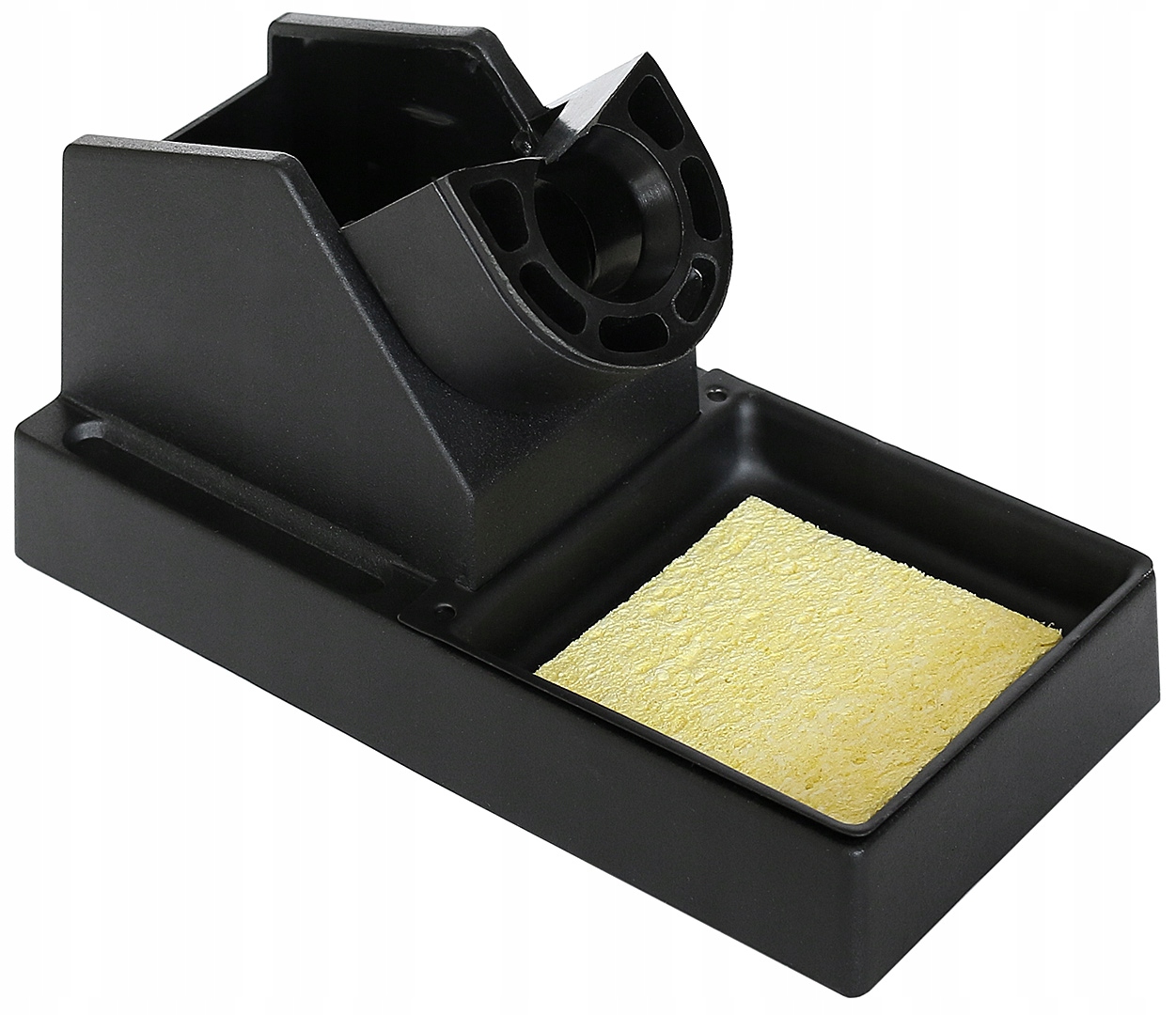Co ważne bakelitowy uchwyt na lutownicę można zdemontować. Wanienka na gąbkę jest metalowa.