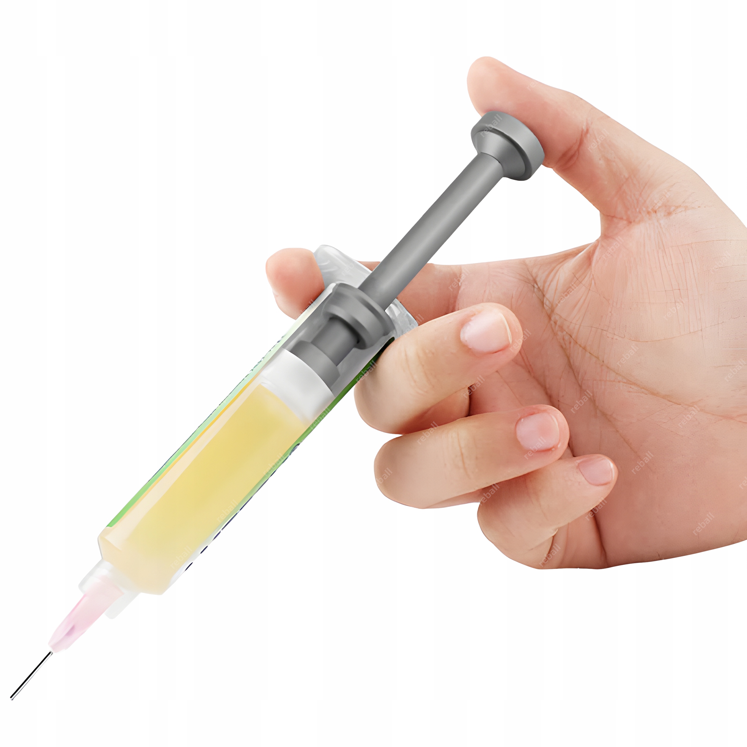 W zestawie znajdują się metalowa igła dozownicza którą nakładasz na strzykawkę