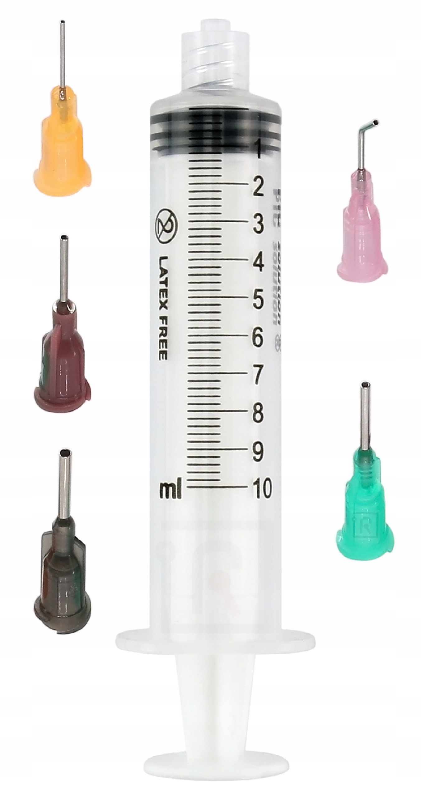 STRZYKAWKA DOZOWNIK 10ml + 5x IGŁA DOZOWNICZA DO FLUX TOPNIK PASTA ŻEL KLEJ