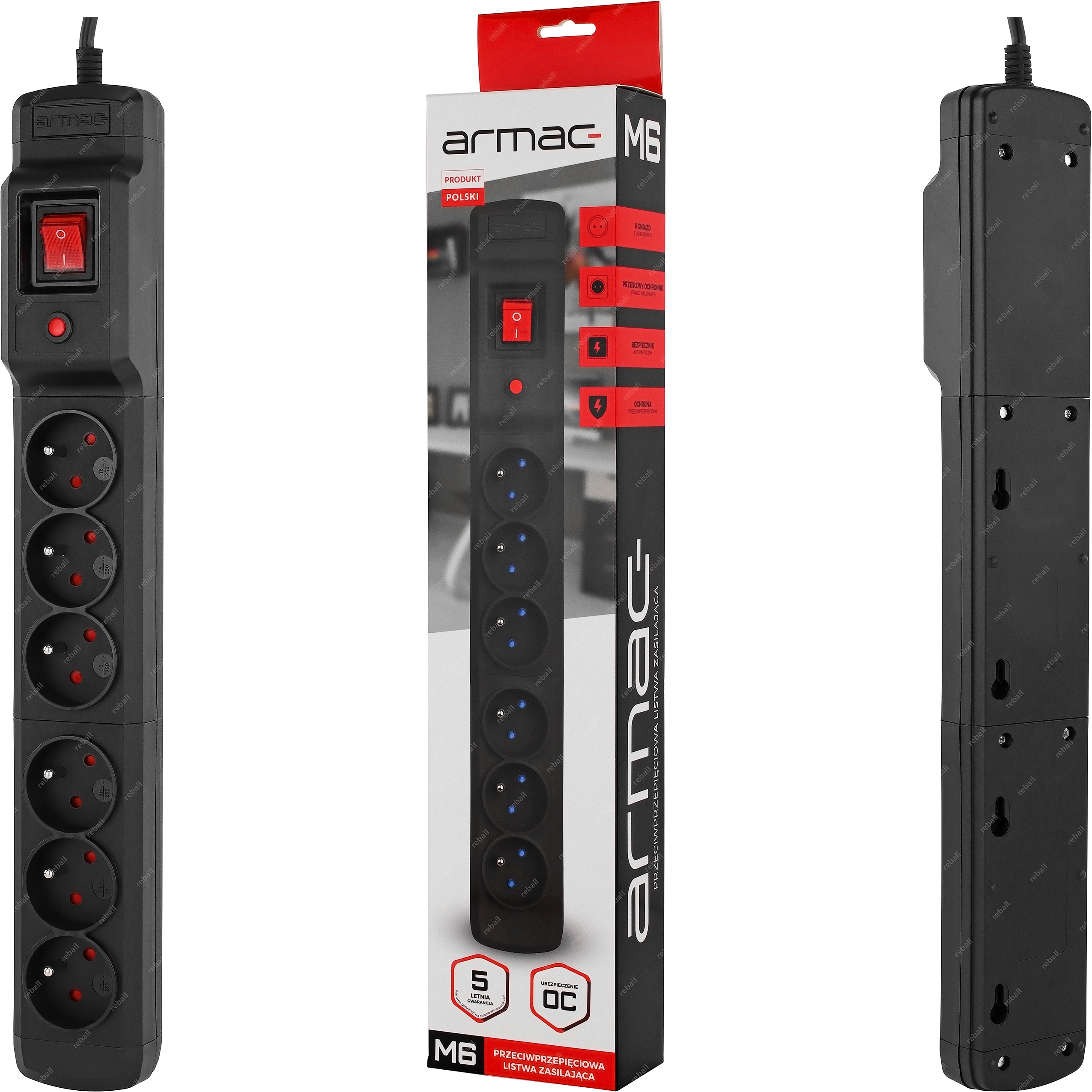 PRZEDŁUŻACZ LISTWA ZASILAJĄCA ANTYPRZEPIĘCIOWA 6 GNIAZD ARCON M6 2500W 1,5m