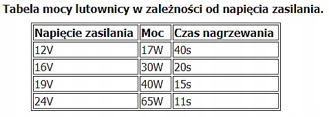 Lutownica posiada wejście zasilające 5,5/2,5mm i może być zasilana napięciem od 12-24VDC.