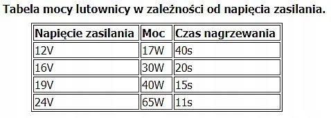 Lutownica posiada wejście zasilające 5,5/2,5mm i może być zasilana napięciem od 12-24VDC.