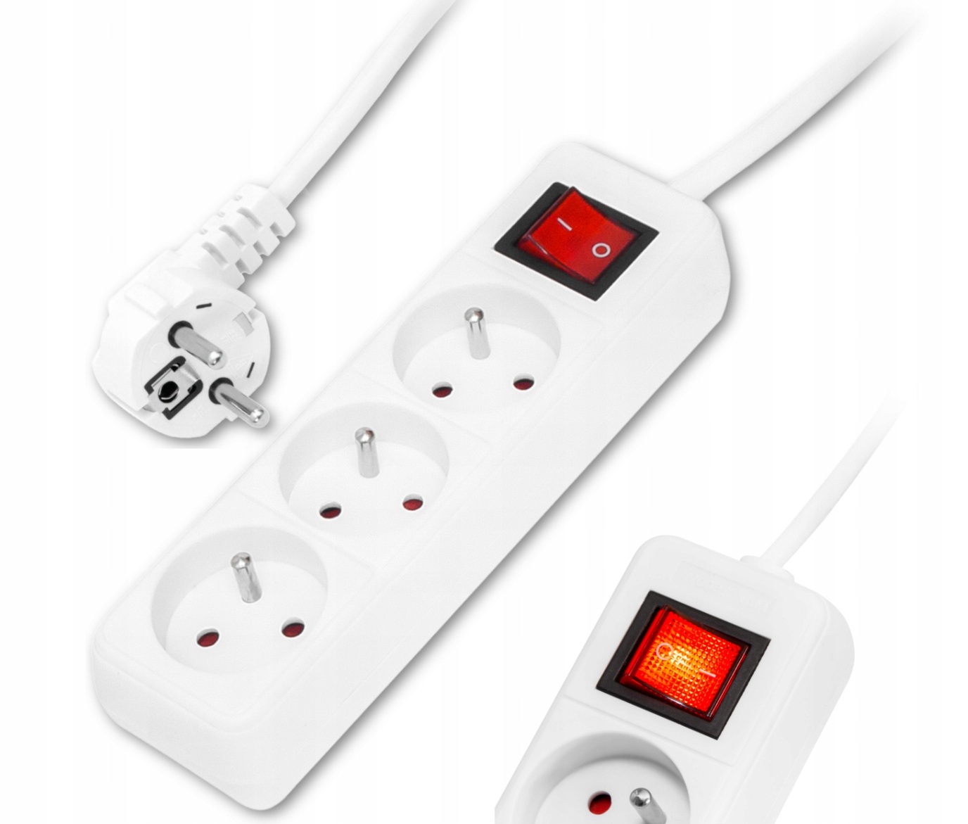 PRZEDŁUŻACZ LISTWA ZASILAJĄCA 3 GNIAZDA 1,5m 10A 2500W Z UZIEMIENIEM BIAŁA