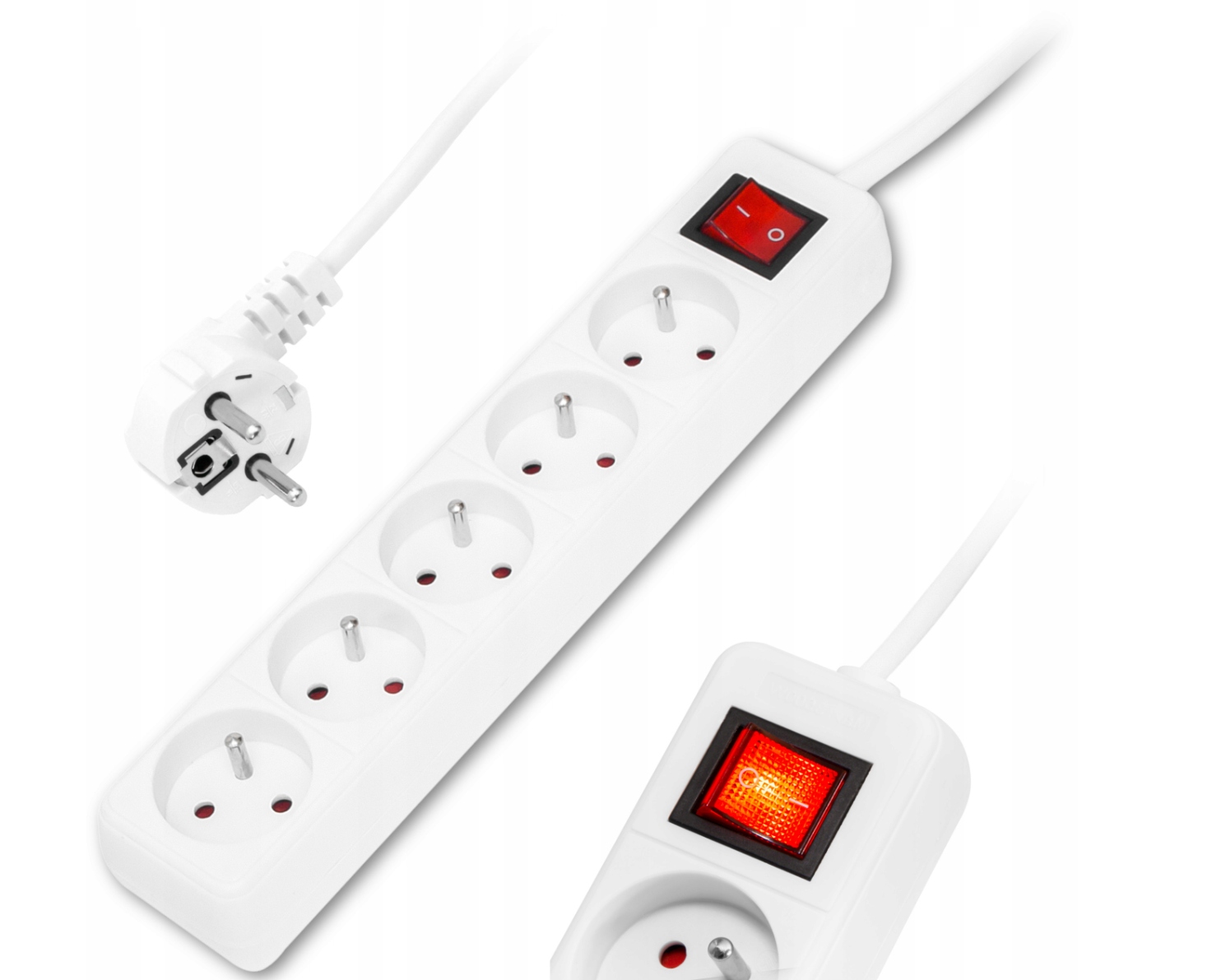 PRZEDŁUŻACZ LISTWA ZASILAJĄCA 5 GNIAZD 1,5m 10A 2500W Z UZIEMIENIEM BIAŁA