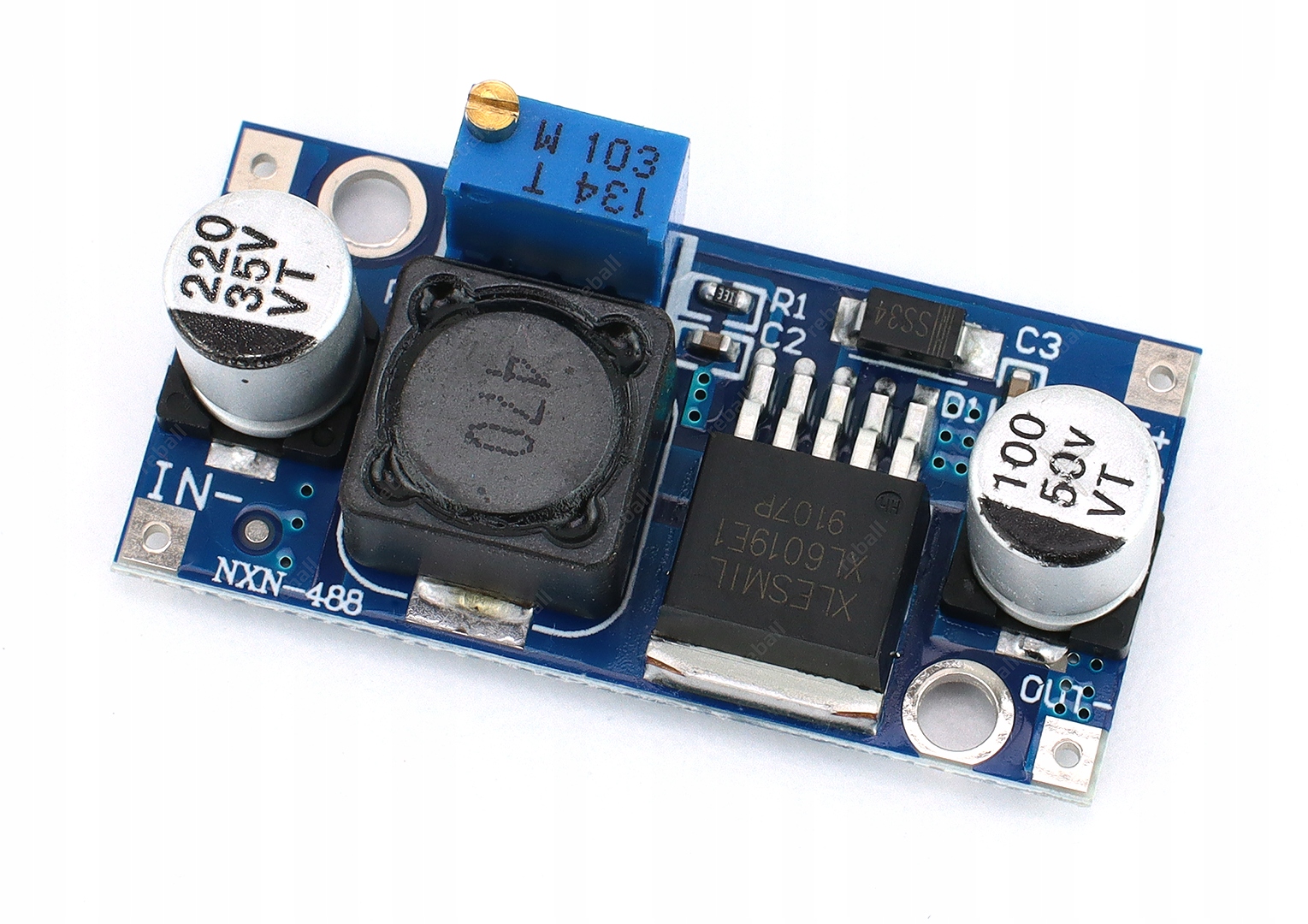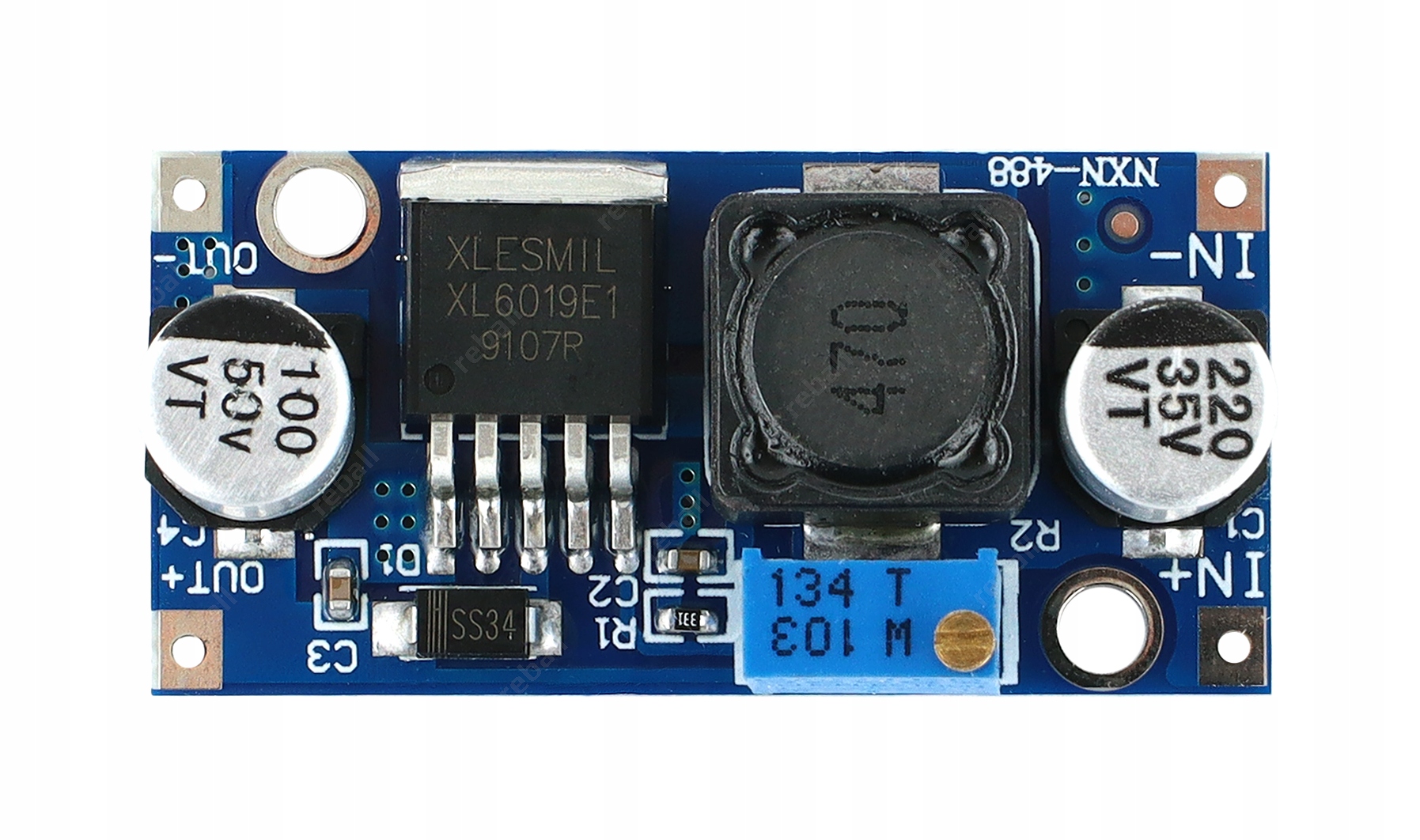Układ XL6019 zamontowany jest na uniwersalnej płytce od modułu XL6009E1.