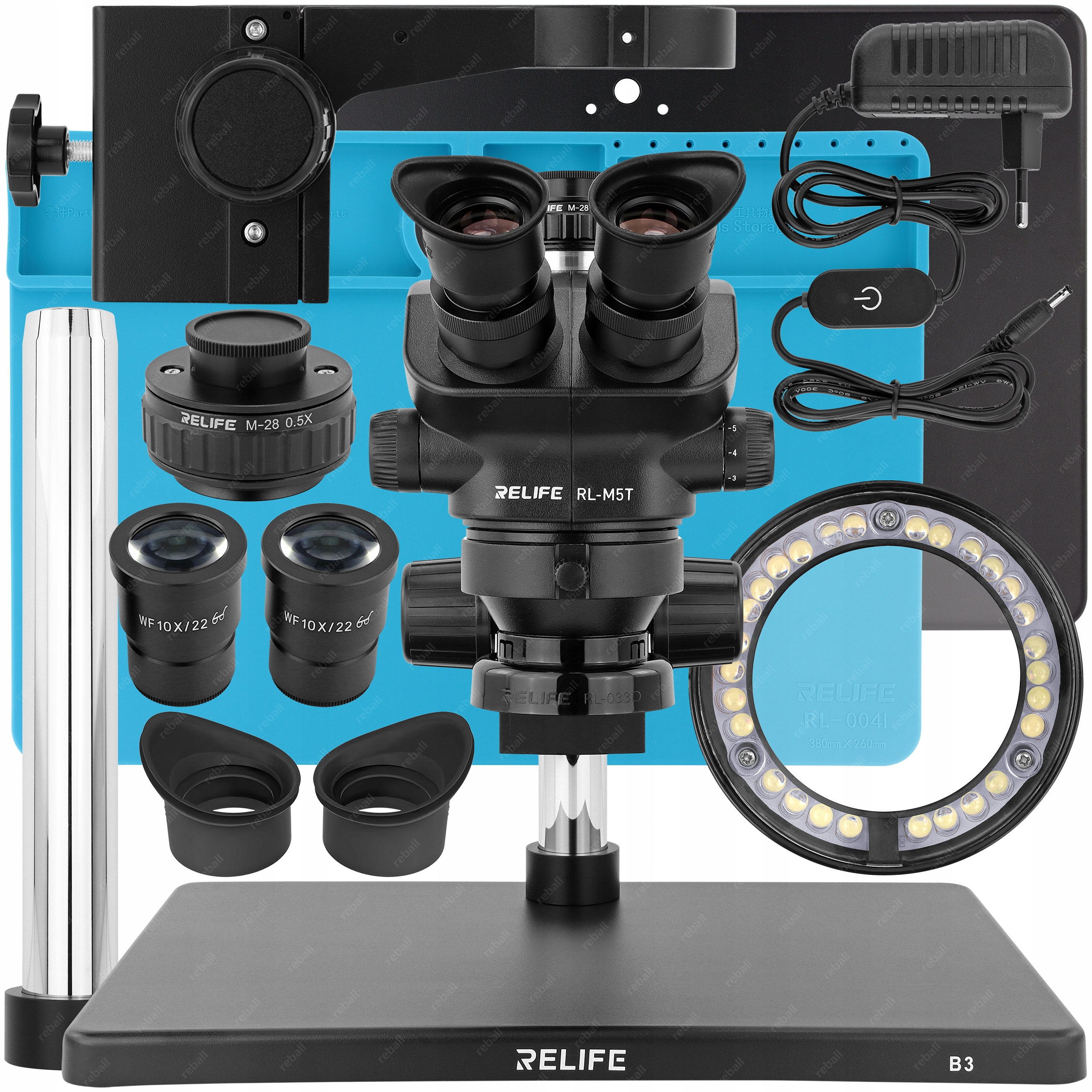 MIKROSKOP STEREOSKOPOWY RELIFE M5T-B3 OŚWIETLENIE LED SERWISOWY 7x-50x