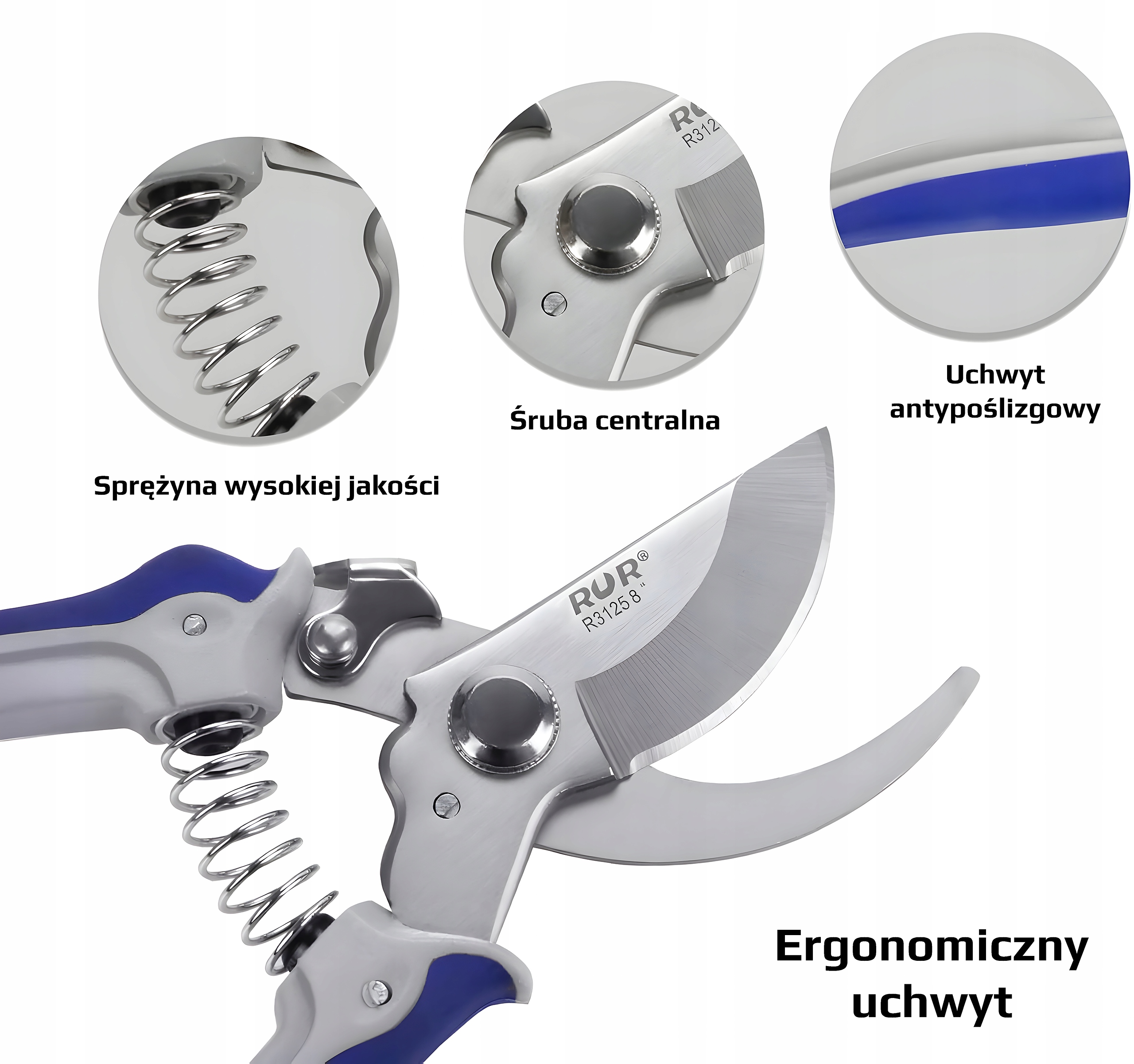 Nasze nożyce ogrodnicze są wyposażone w ergonomicznie zaprojektowany uchwyt, a koniec uchwytu wyposażony jest w gumowy przywieszkę, która ułatwia przenoszenie oraz umożliwia zawieszenie.