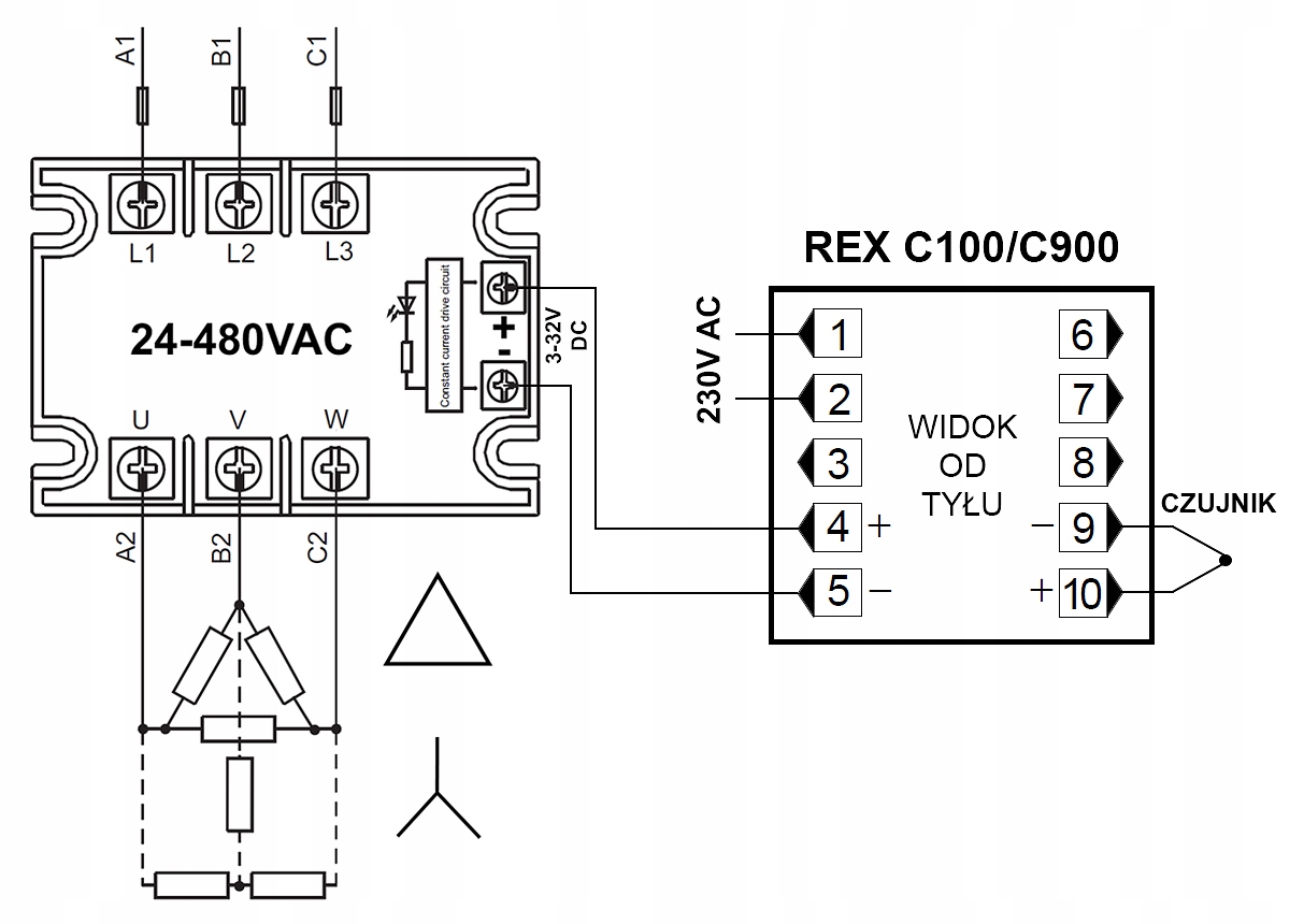 UWAGA: Przekaźnik 3 fazowy SSR może pracować w 2 konfiguracjach: