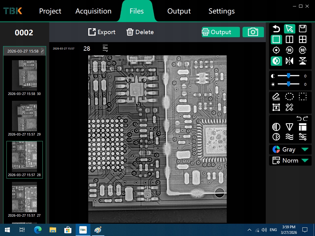 TBK-2208 to zaawansowane, stacjonarne urządzenie rentgenowskie przeznaczone do nieniszczącej diagnostyki elektroniki, w szczególności płyt głównych, układów BGA oraz komponentów PCB.