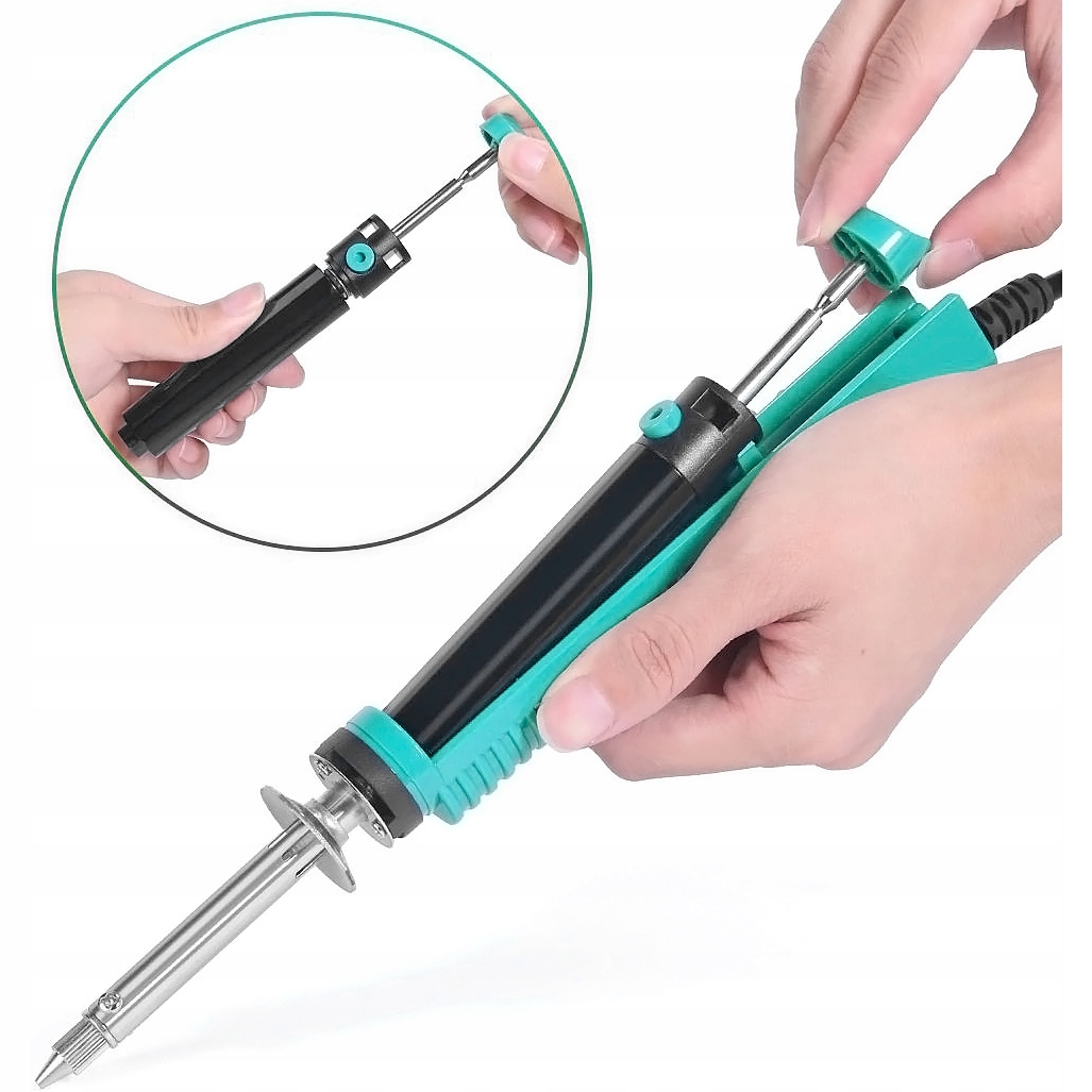 Dzięki przemyślanej konstrukcji urządzenia można szybko i bezproblemowo przeprowadzić wymianę grotu na inny poprzez jego wykręcenie. Dodatkowo odsysacz bardzo łatwo utrzymać w dobrym stanie zachowując jego czystość dzięki zawartej w zestawie igle służącej do jego regularnego czyszczenia (wycior).