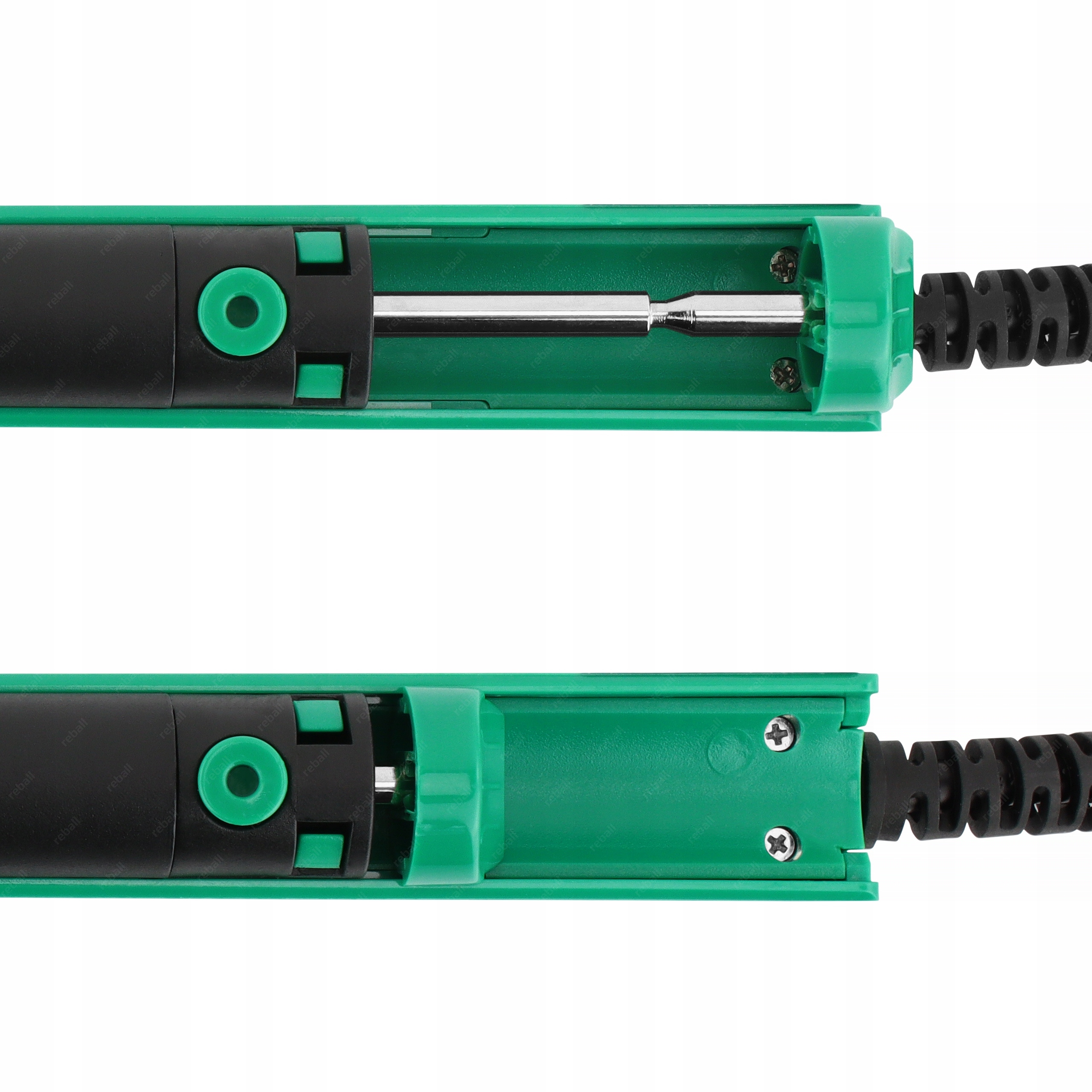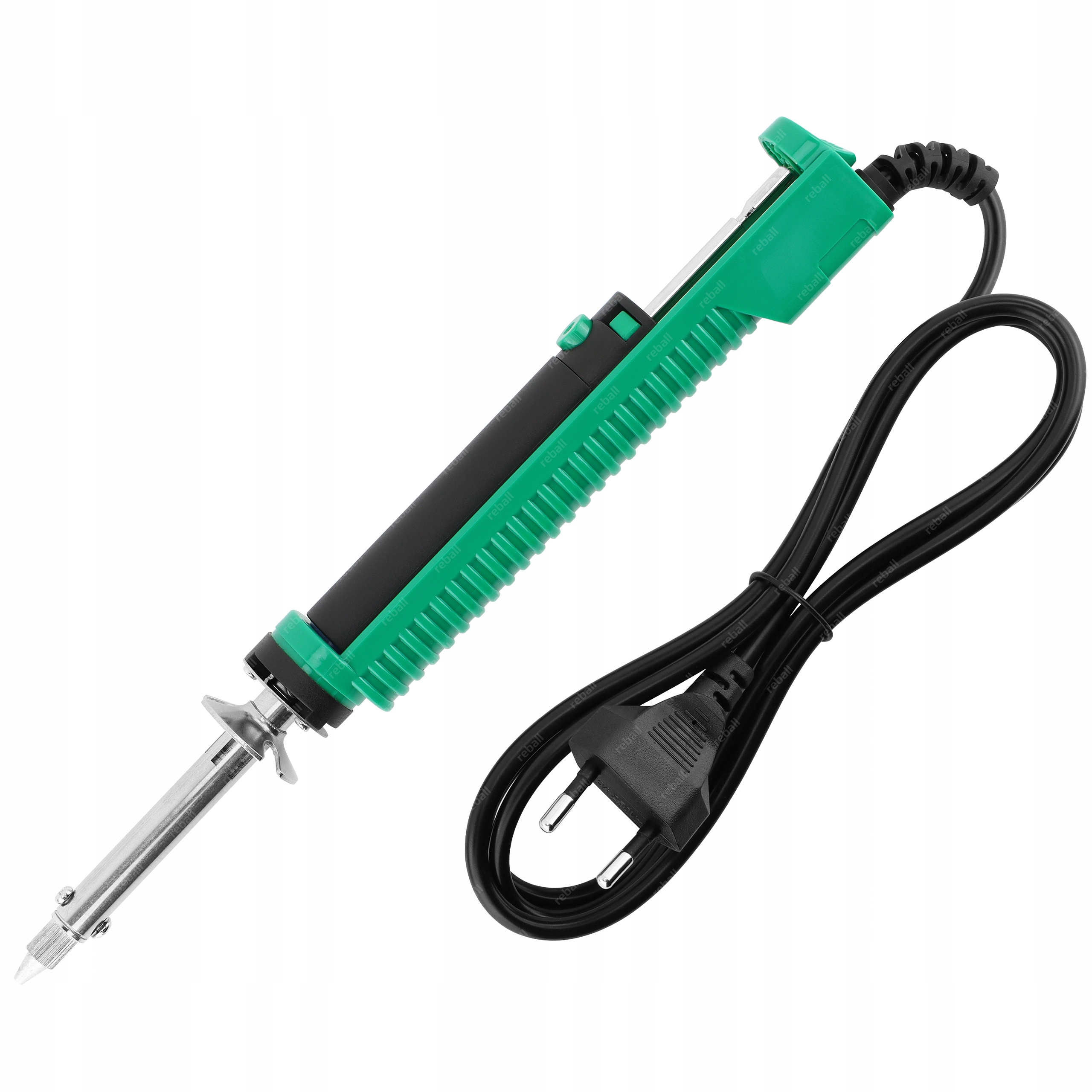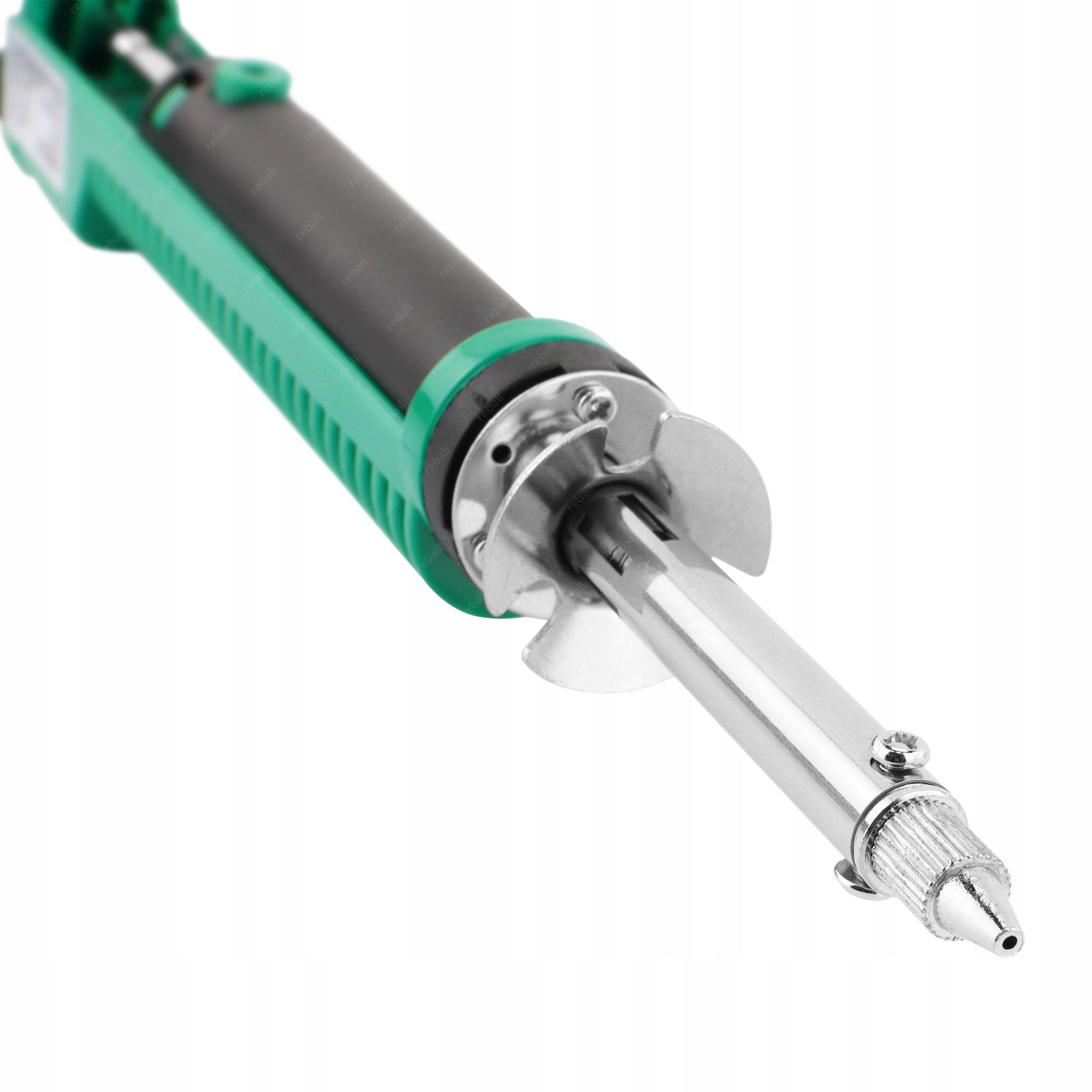 Profesjonalny odsysacz lutowniczy, służy do usuwania spoiwa lutowniczego oraz wylutowywania elementów elektronicznych. Urządzenie bardzo szybko osiąga niezbędną temperaturę do pracy. Dzięki solidnej konstrukcji odsysacz idealnie nadaje się do bardzo efektywnej pracy przy użyciu jednej ręki.