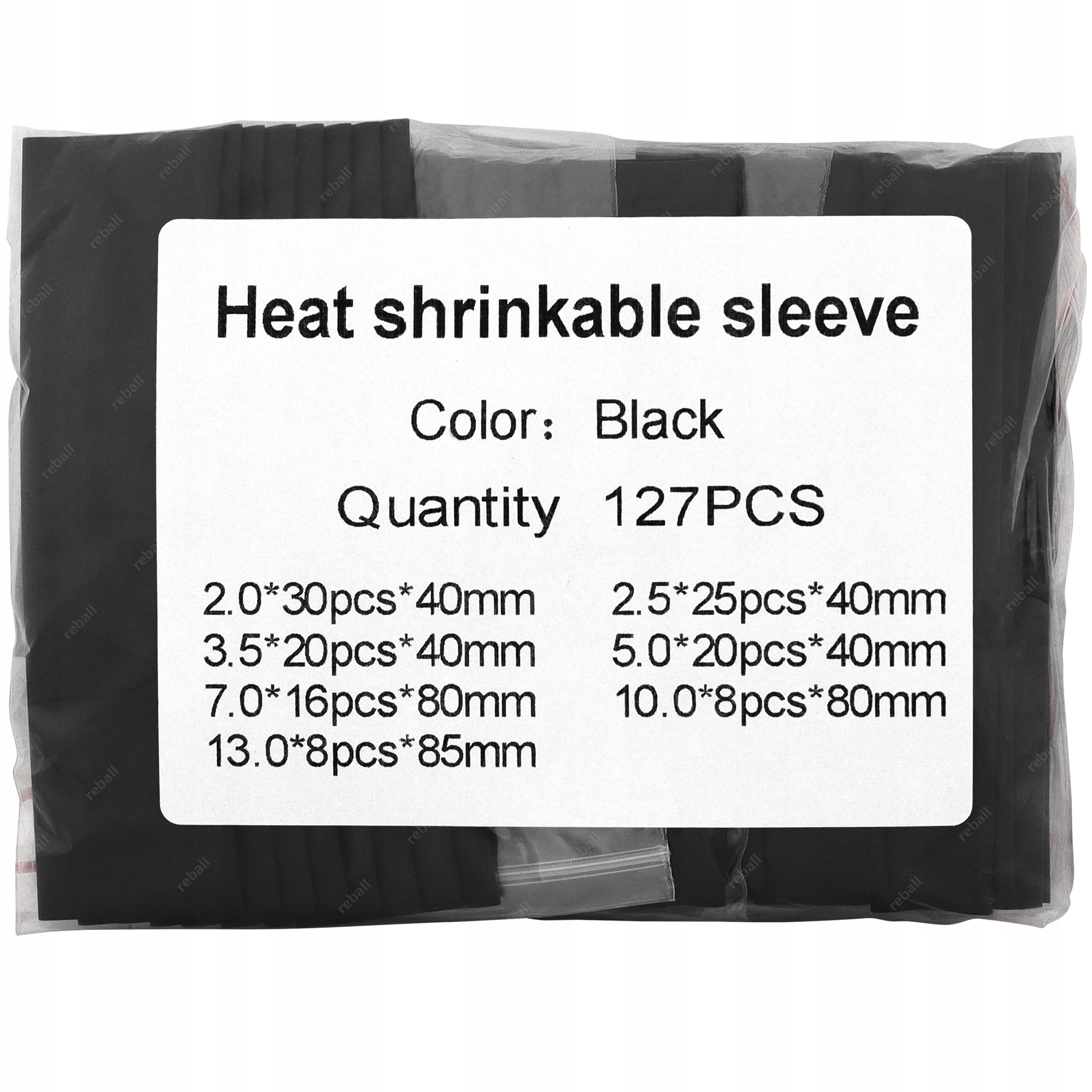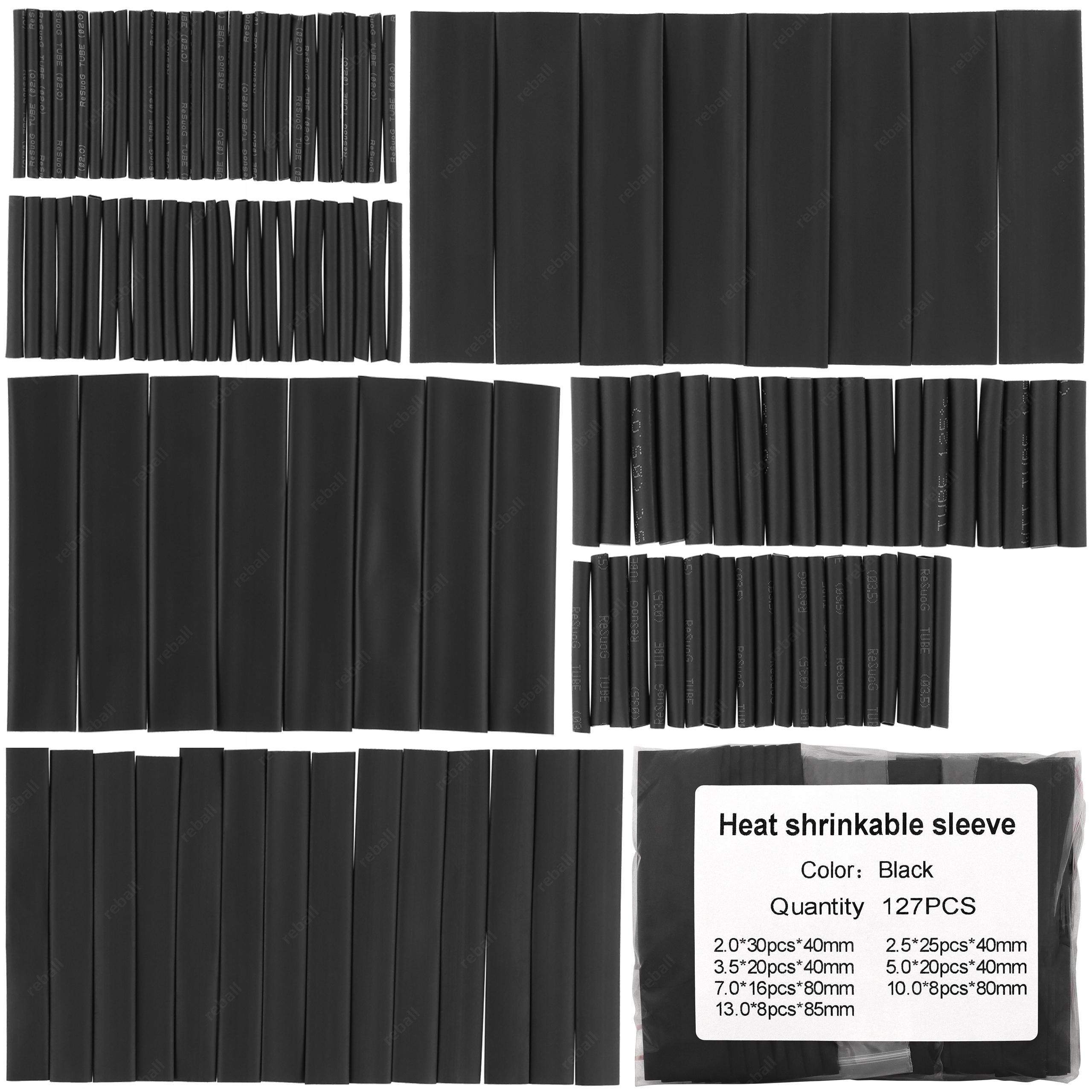 W skład zestawu 127 sztuk wchodzą następujące rurki termokurczliwe o długości 40mm oraz 80mm
