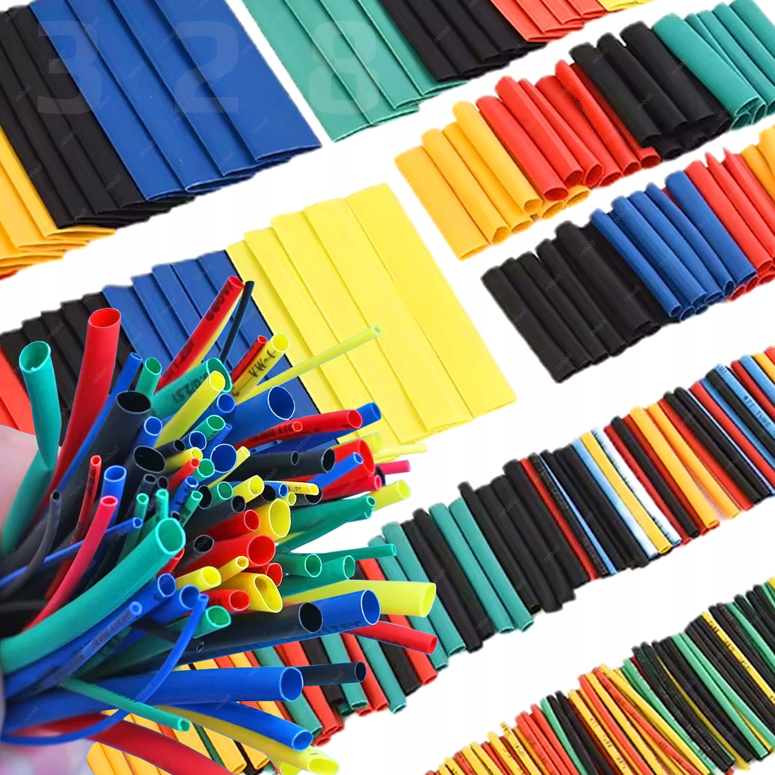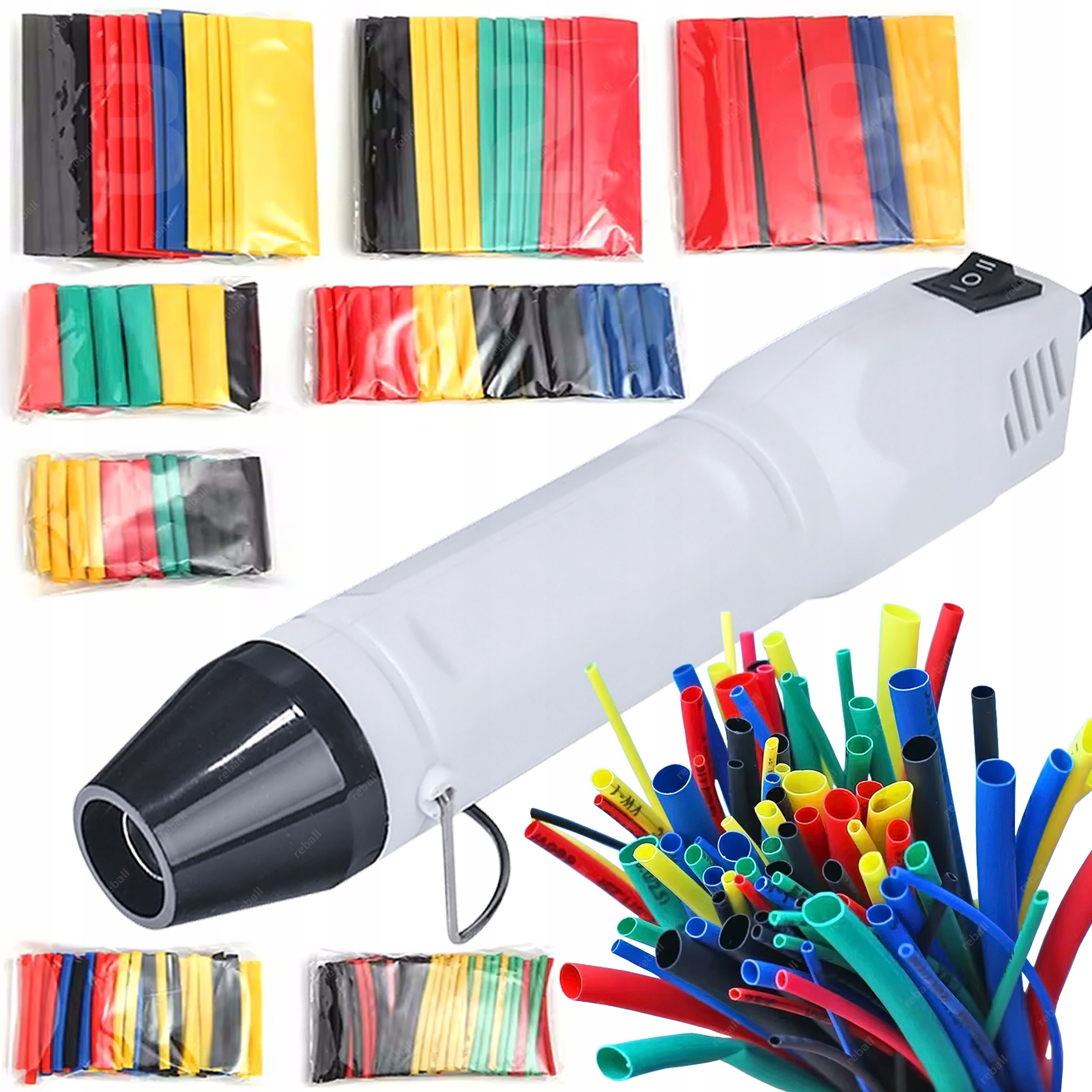 W komplecie z opalarką znajduje się zestaw rurek termokurczliwych REBALL 328szt., niezbędnych podczas prac serwisowych.