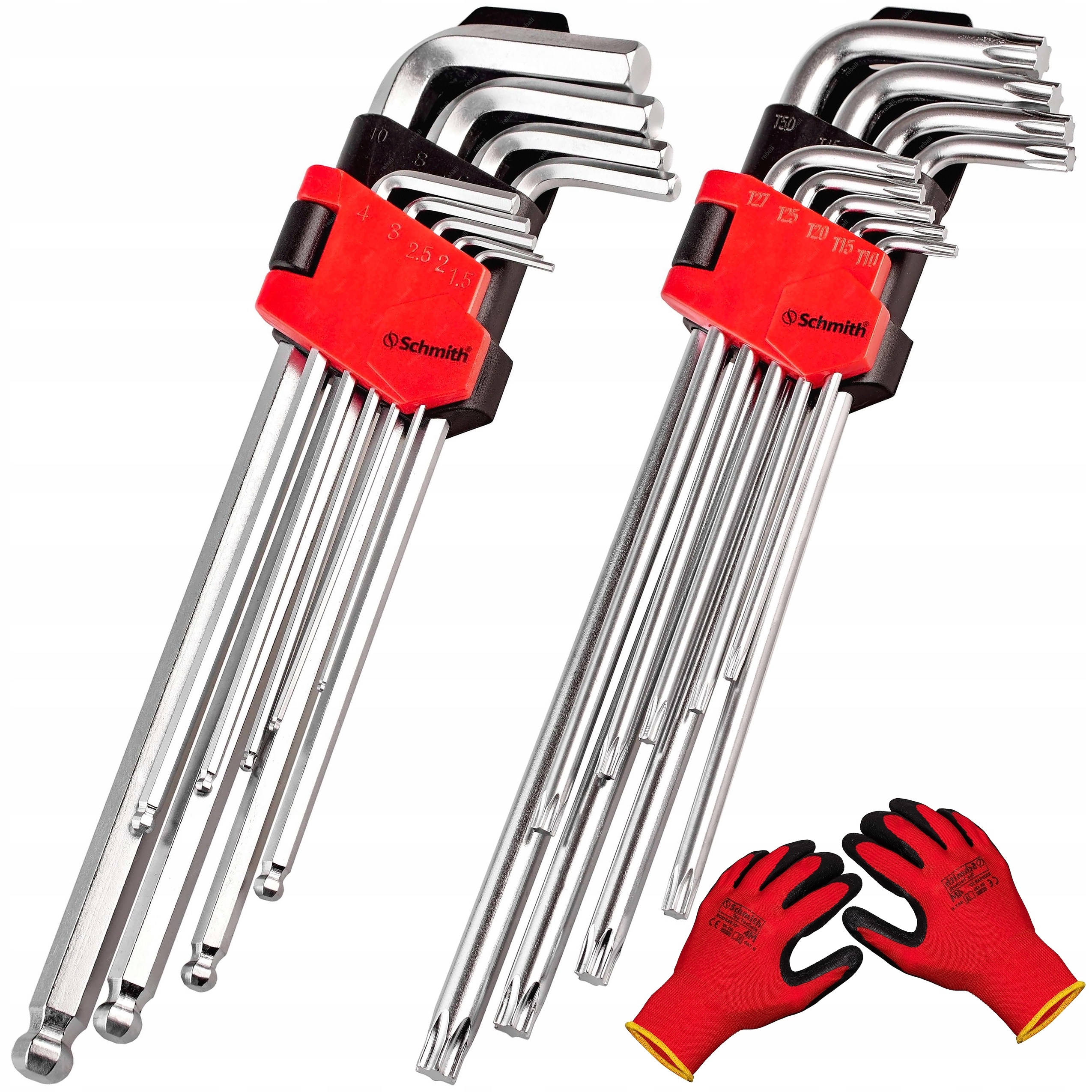 2X ZESTAW KLUCZY IMBUS HEX + TORX + RĘKAWICE -19EL
