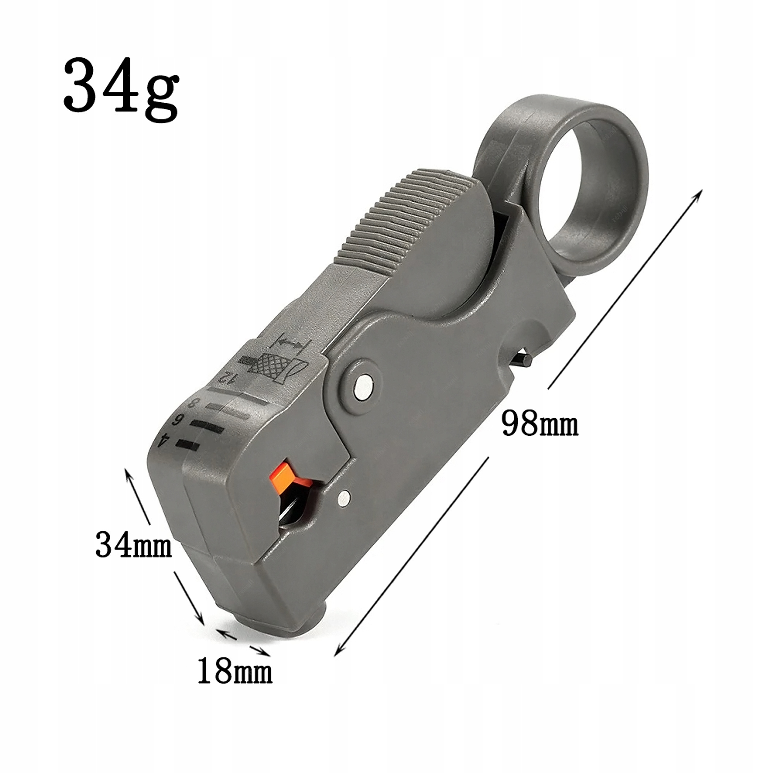 Kompaktowy, szybki ściągacz izolacji przewodów antenowych.