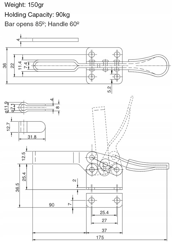 Uniwersalny docisk montażowy GH-201-B w wersji wydłużonej zapewnia siłę docisku 90kg i zasięg roboczy 85mm.