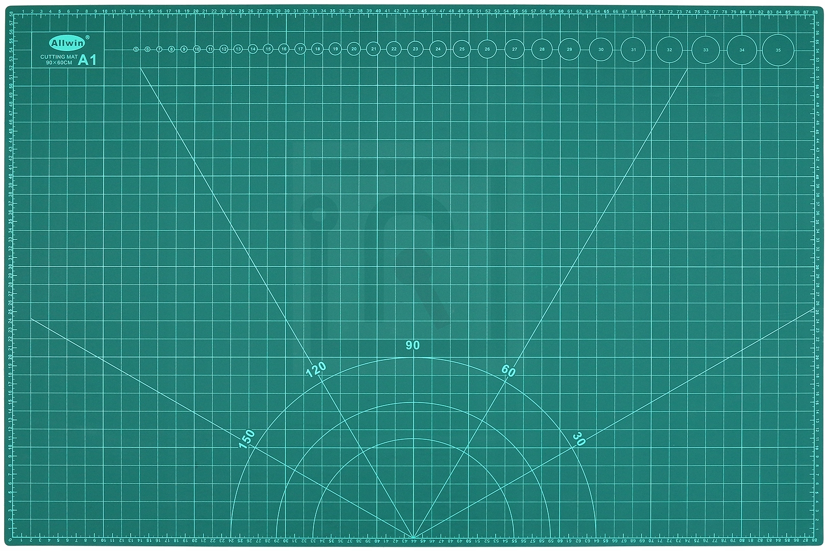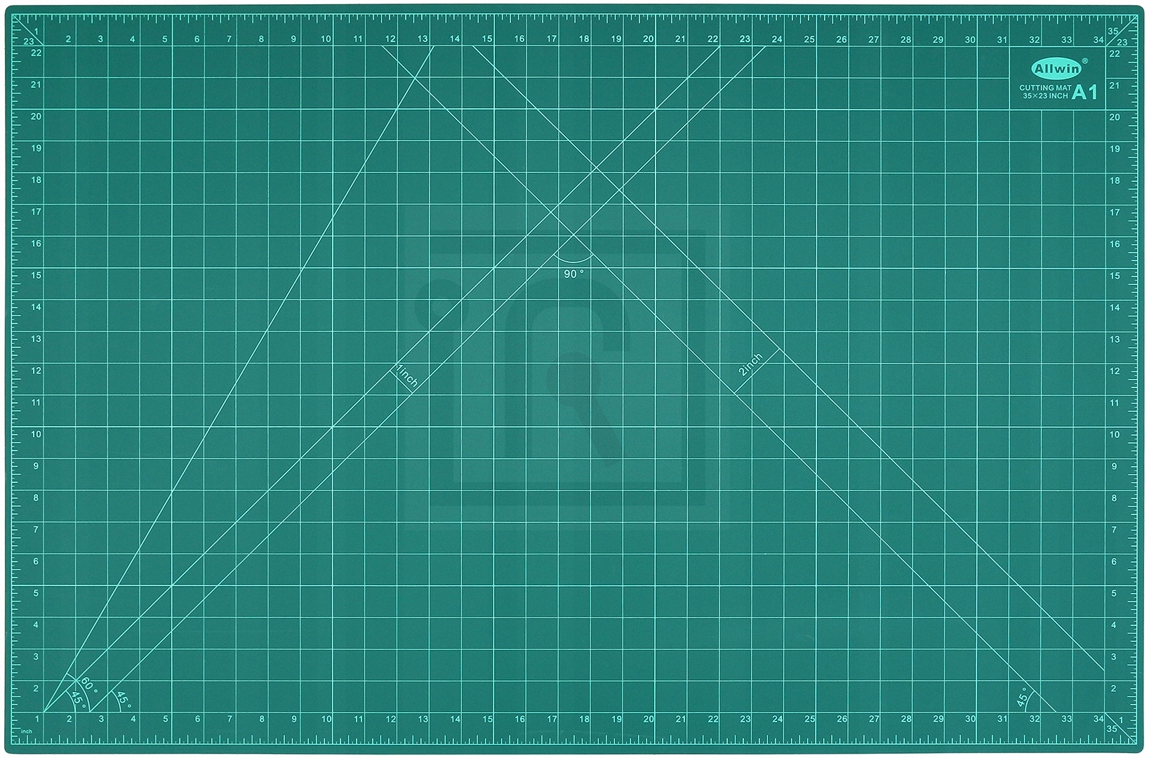 Mata posiada nadrukowane podziałki do precyzyjnego cięcia, kąty oraz miarkę metryczną.