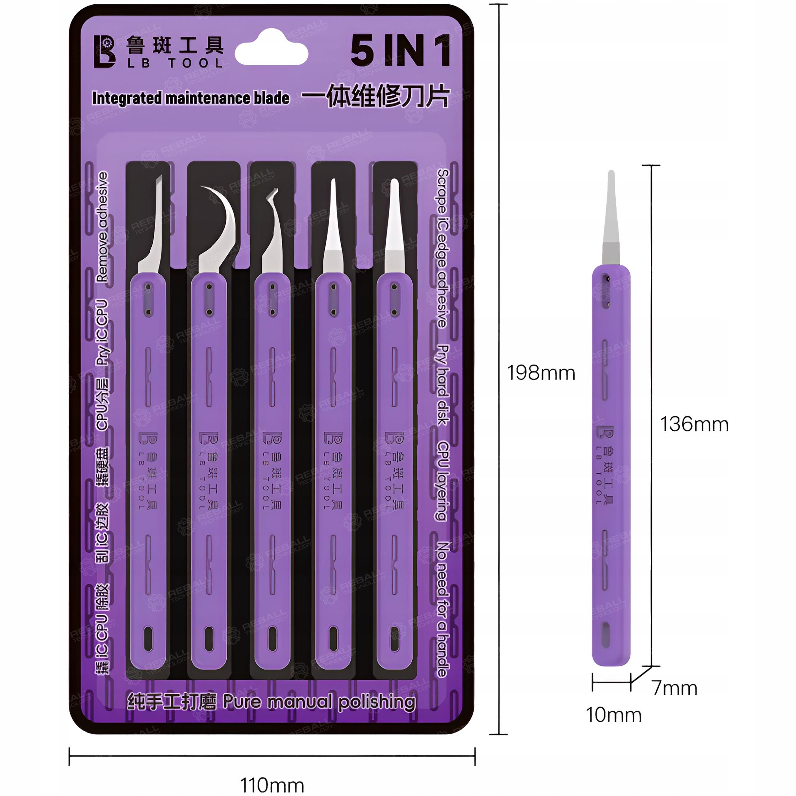 Zestaw skalpeli serwisowych LB Tool 5in1 to profesjonalne narzędzia przeznaczone do pracy z układami PCB, BGA oraz elementami elektronicznymi.
