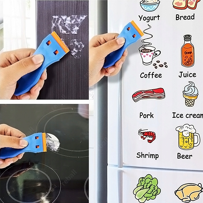 Ten wygodny nożyk / skrobak z uchwytem i wymiennym plastikowym, dwustronnym ostrzem do usuwania zanieczyszczeń z płyt indukcyjnych, płyt ceramicznych, kleju z uszkodzonych szybek / digitezerów / ekranów dotykowych jest niezastąpiony w każdym gospodarstwie domowym czy nawet serwisie urządzeń mobilnych.
