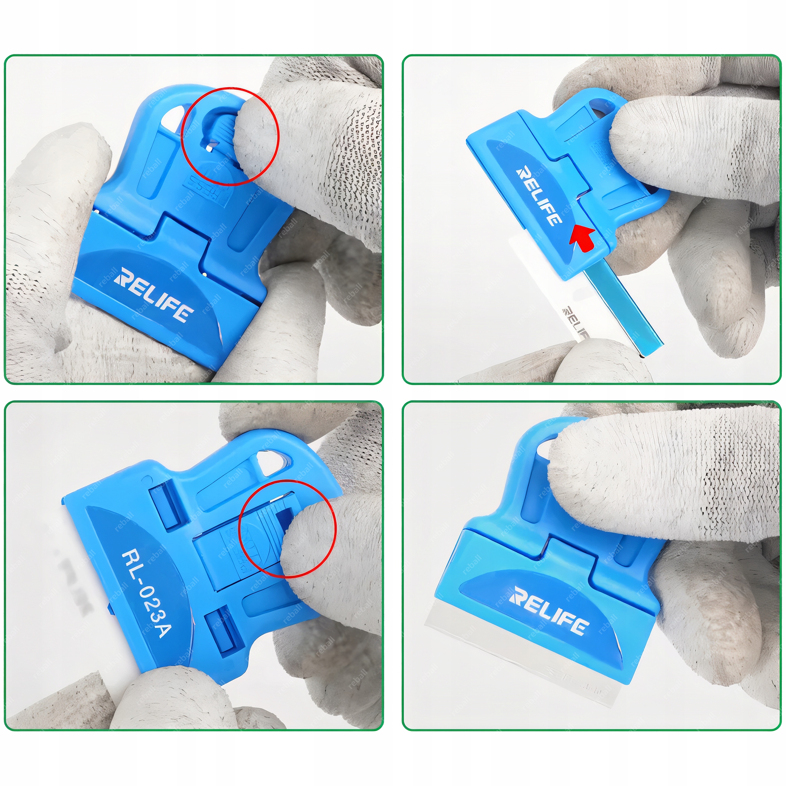 RELIFE RL-023A to wielofunkcyjny skrobak serwisowy przeznaczony do precyzyjnego usuwania kleju z ekranów i ramek urządzeń elektronicznych.