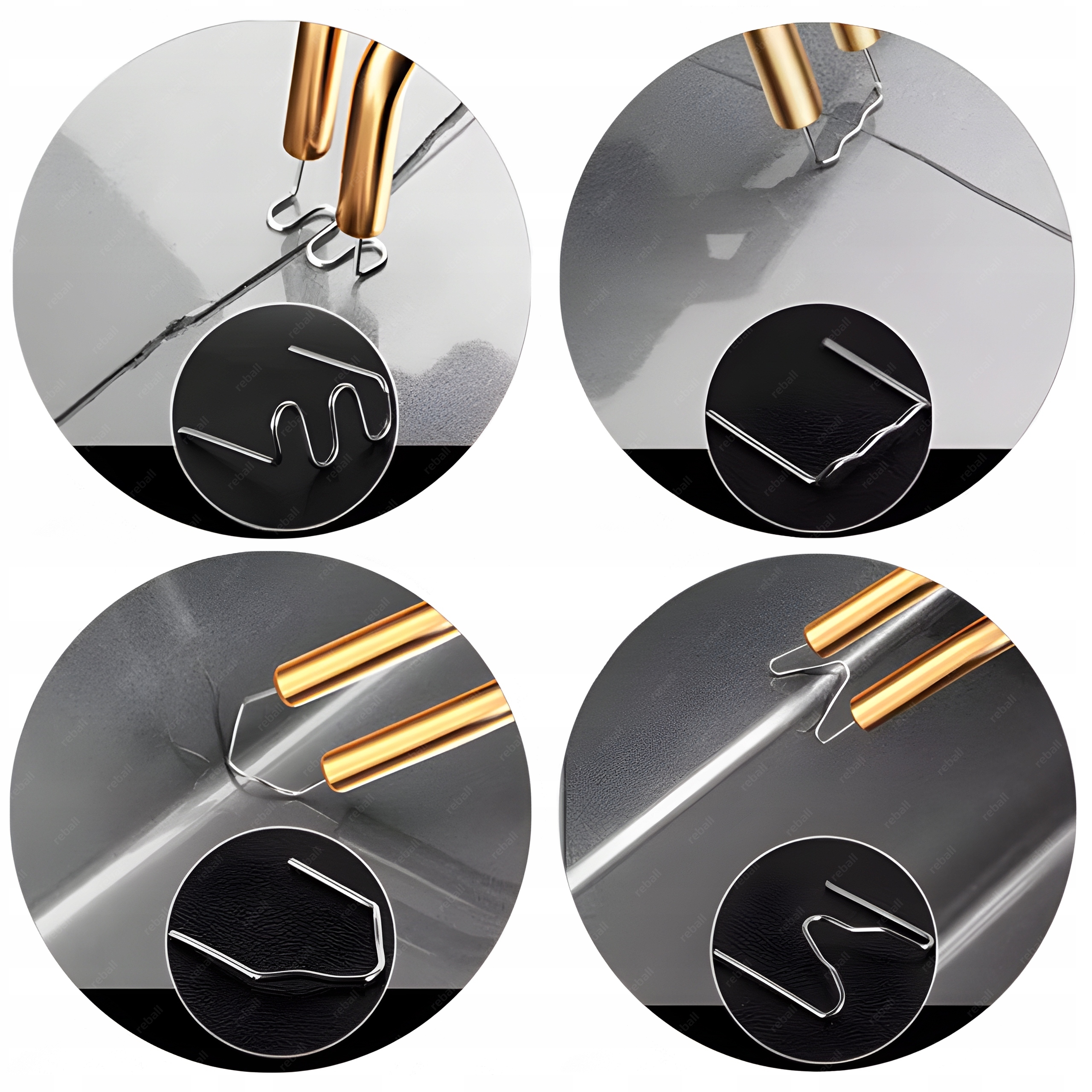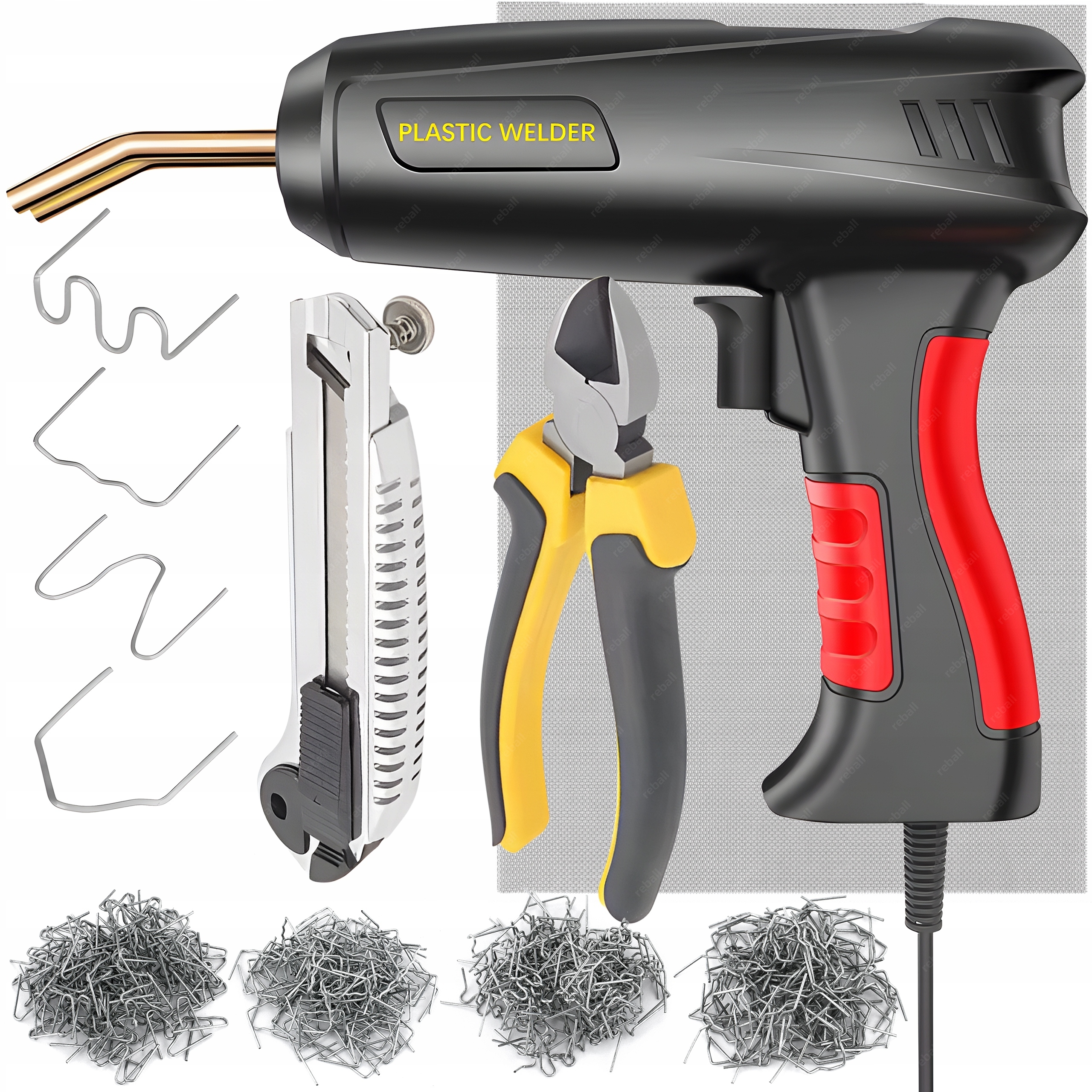 W zestawie 200 zszywek za pomocą których urządzenie trwale połączy ze sobą pęknięte elementy plastikowe a miejsce łączenia będzie odporne na wstrząsy i skręcanie.