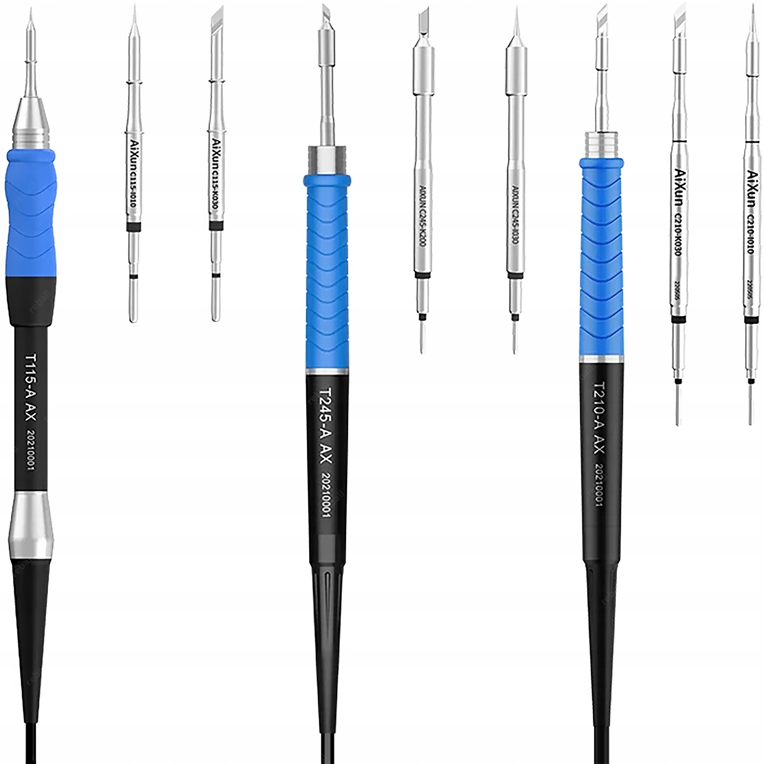 Stacja została wyposażona w trzy kolby lutownicze obsługujące różne typy grotów:
