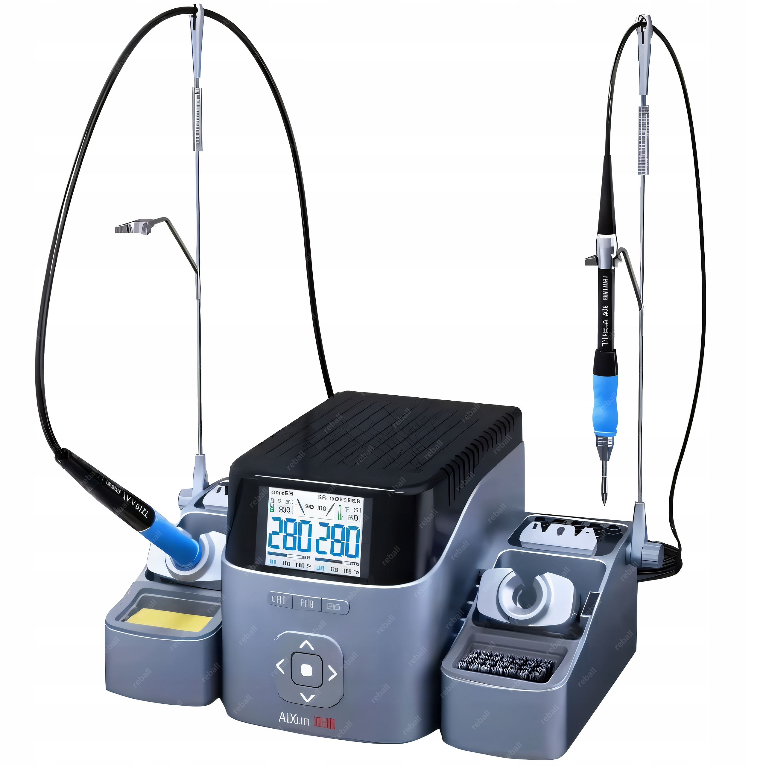 Stacja została wyposażona w trzy kolby lutownicze obsługujące różne typy grotów: