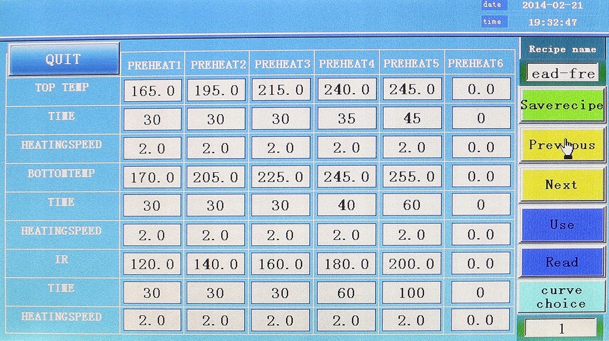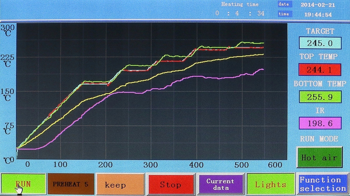 Stacja umożliwia zaprogramowanie 55 profili grzania, śledzenie ich na bieżąco jak i zmianę już ustawionych parametrów w dowolnej chwili (również w czasie grzania). W celu lepszego zapewnienia efektu końcowego każdy z profili można zaprogramować w 6 blokach temperaturowych. Po skończonym procesie grzania na wyświetlaczu można przeanalizować pełen jego przebiegu.