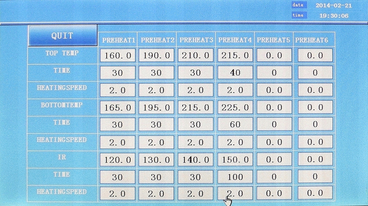 Stacja umożliwia zaprogramowanie 55 profili grzania, śledzenie ich na bieżąco jak i zmianę już ustawionych parametrów w dowolnej chwili (również w czasie grzania). W celu lepszego zapewnienia efektu końcowego każdy z profili można zaprogramować w 6 blokach temperaturowych. Po skończonym procesie grzania na wyświetlaczu można przeanalizować pełen jego przebiegu.