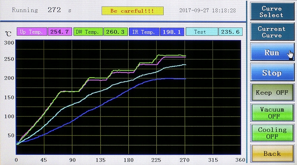 Stacja umożliwia zaprogramowanie 20000 profili grzania, śledzenie ich na bieżąco jak i zmianę już ustawionych parametrów w dowolnej chwili (również w czasie grzania). W celu lepszego zapewnienia efektu końcowego każdy z profili można zaprogramować w 8 blokach temperaturowych. Po skończonym procesie grzania na wyświetlaczu można przeanalizować pełen jego przebiegu.