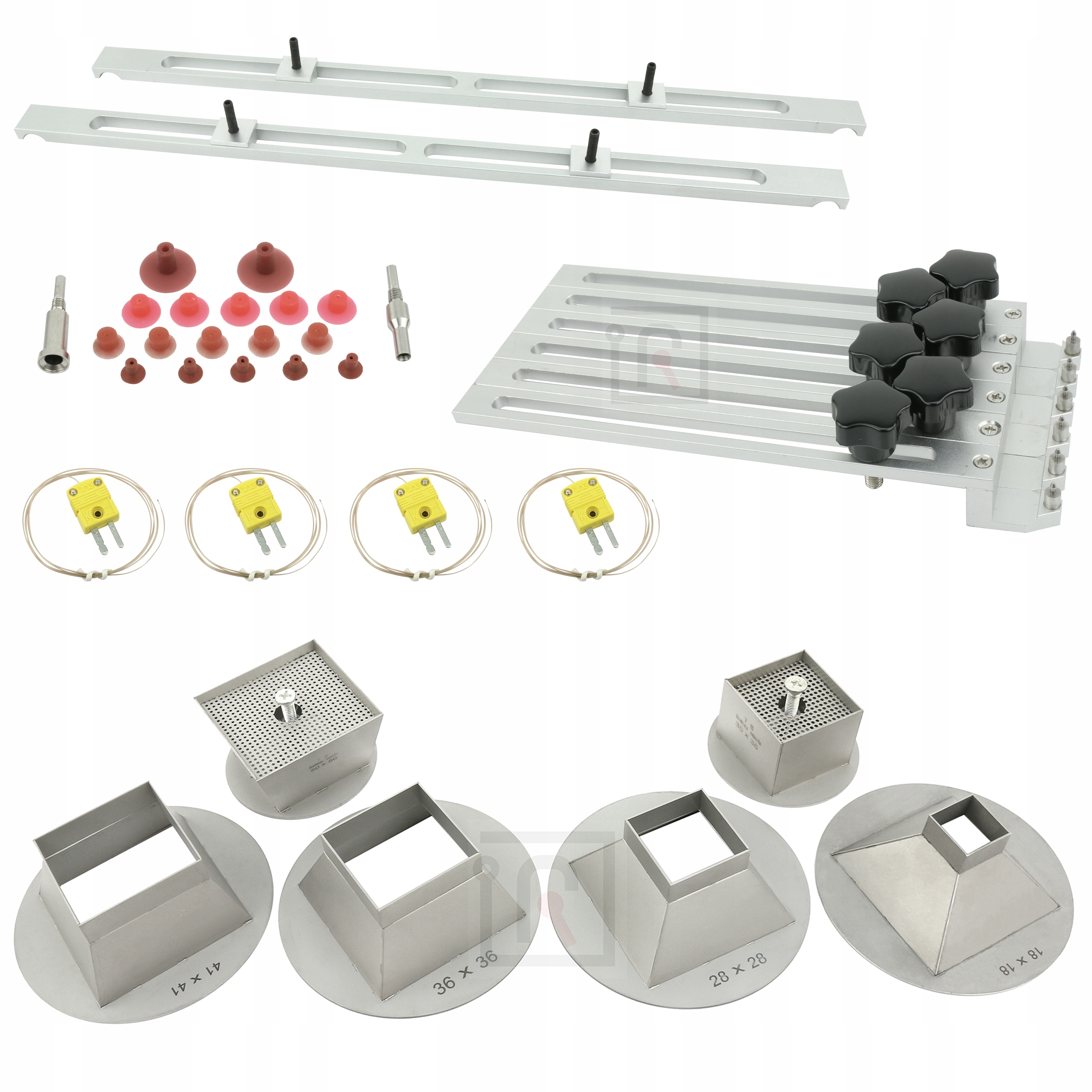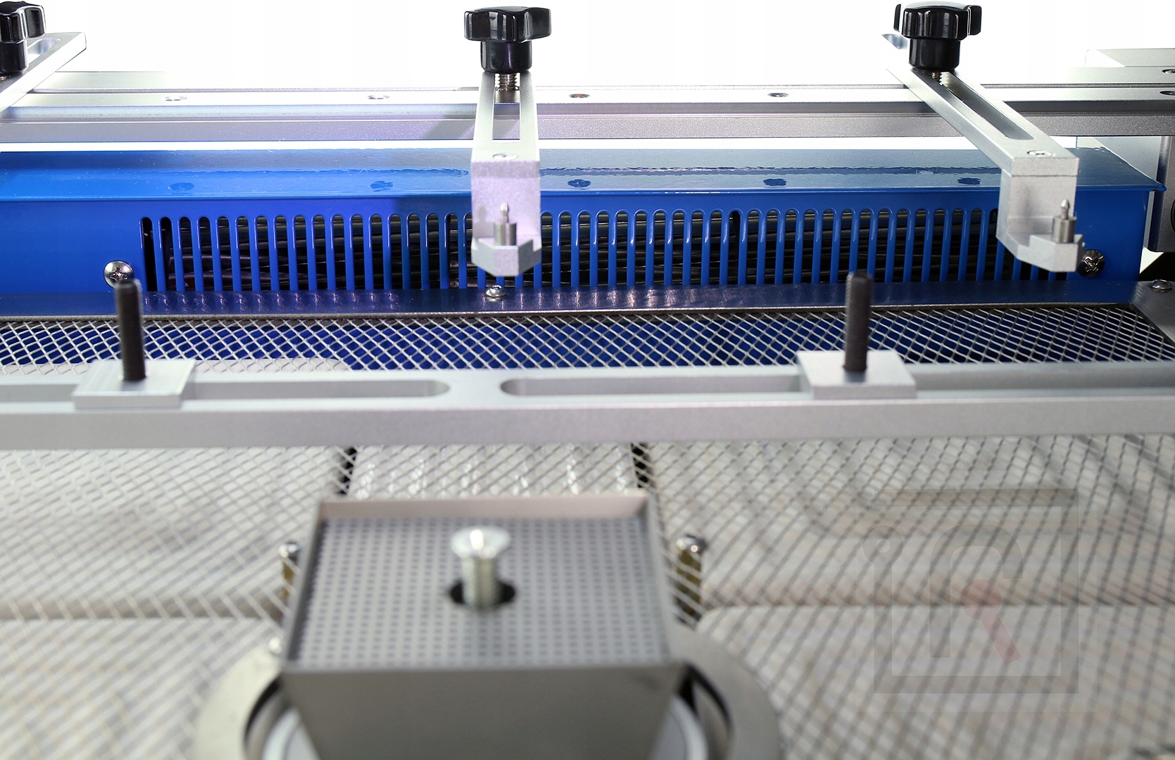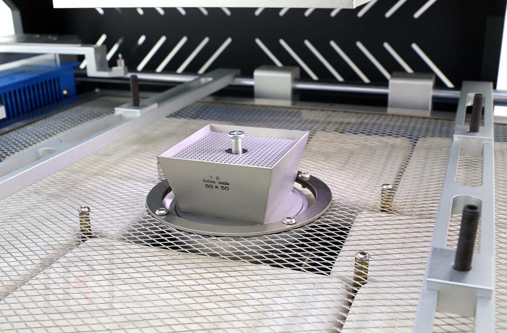 W celu wyeliminowania ugięcia płyty podczas procesu lutowniczego uchwyt posiada dodatkowo dwa rzędy wsporników i możliwość podparcia bezpośrednio pod lutowanym układem (śruba o regulowanej wysokości w dolnej dyszy hotair).