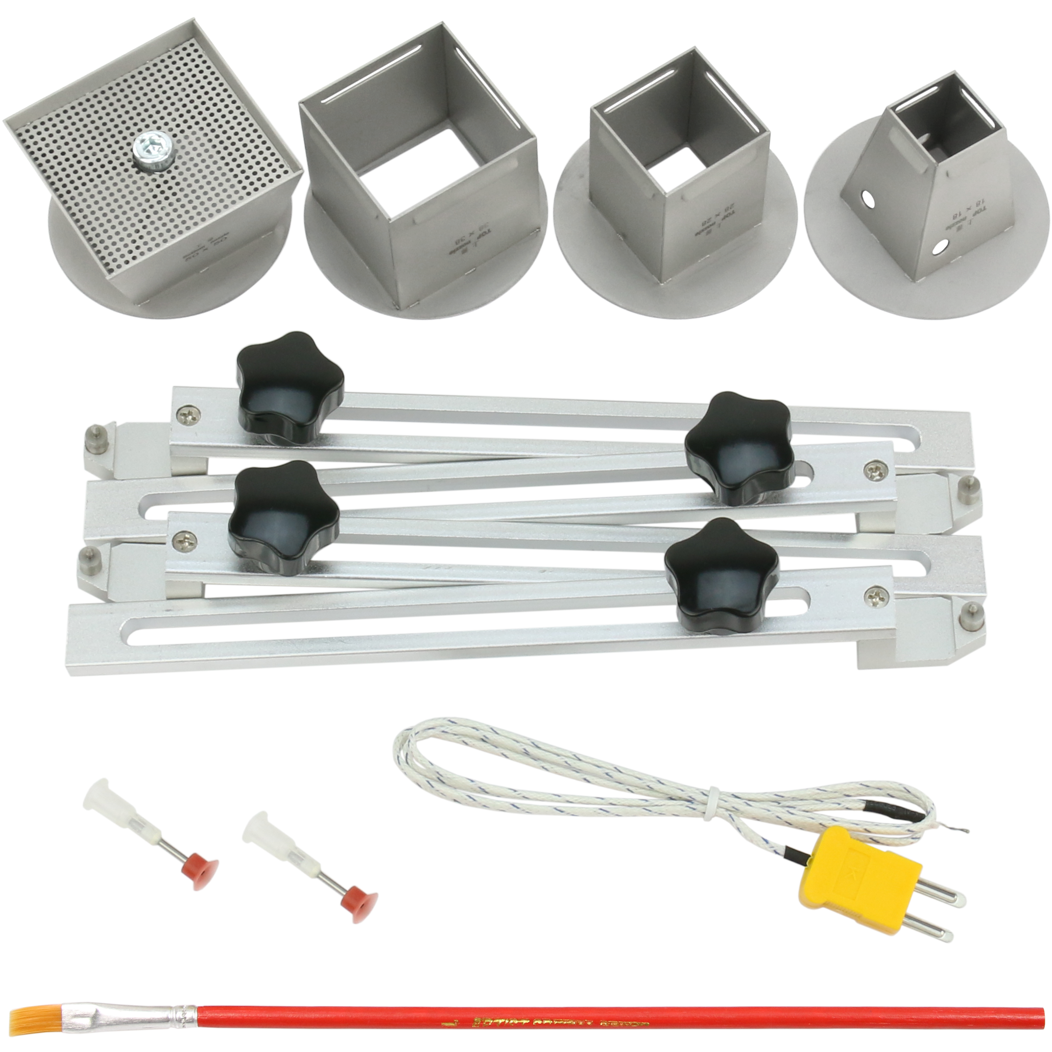 4. Trzy dysze górnego podgrzewacza gorącego powietrza (18x18, 28x28, 38x38) oraz dolna 50x50mm.