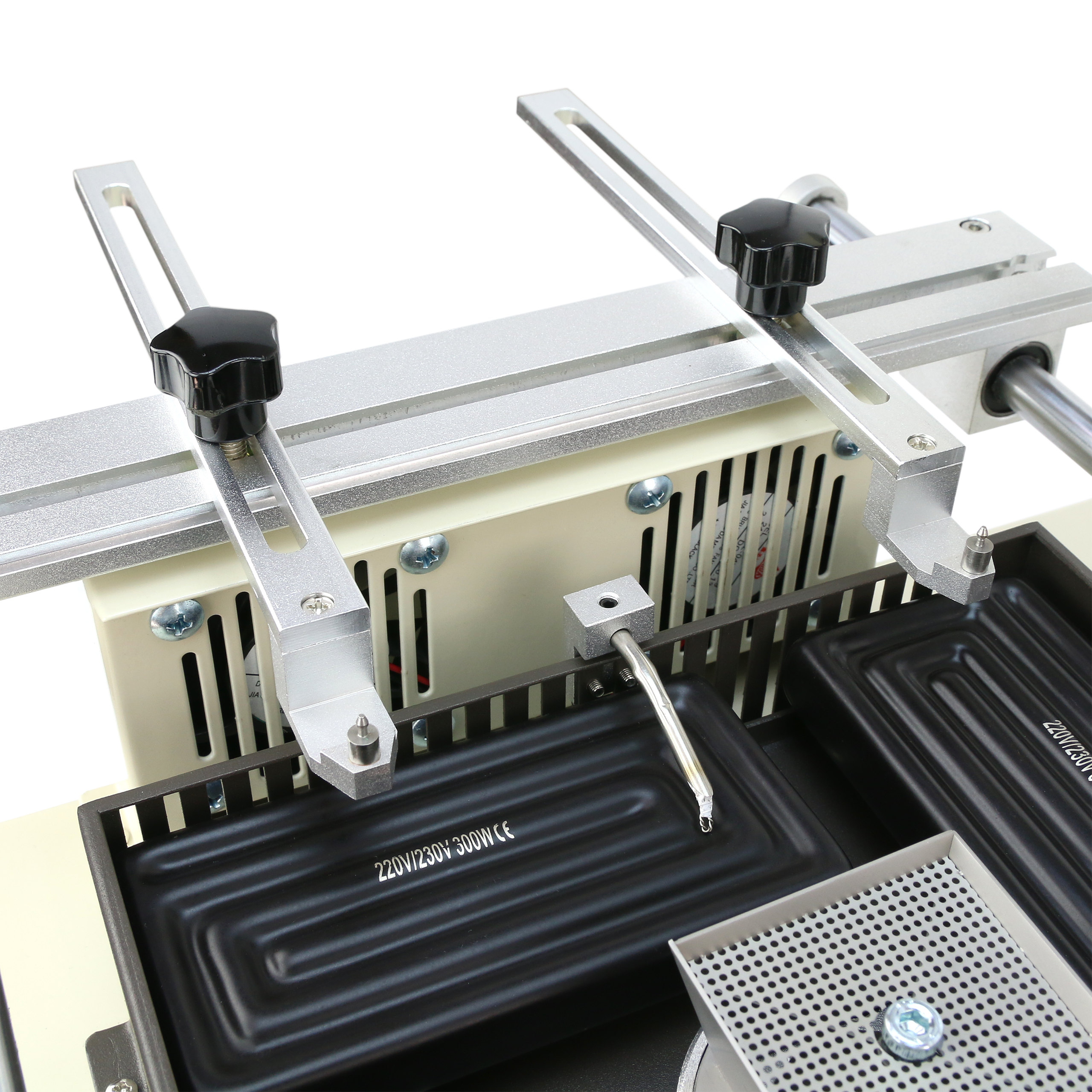 Główny uchwyt płyt PCB został wyposażony w żłobienie typu V co zapewnia szybki i stabilny montaż płyt oraz duży zakres regulacji. Dodatkowo w zestawie znajdują się cztery uchwyty do niestandardowych płyt PCB.