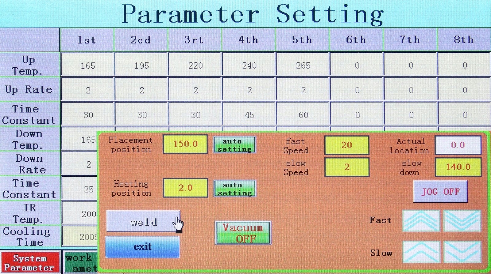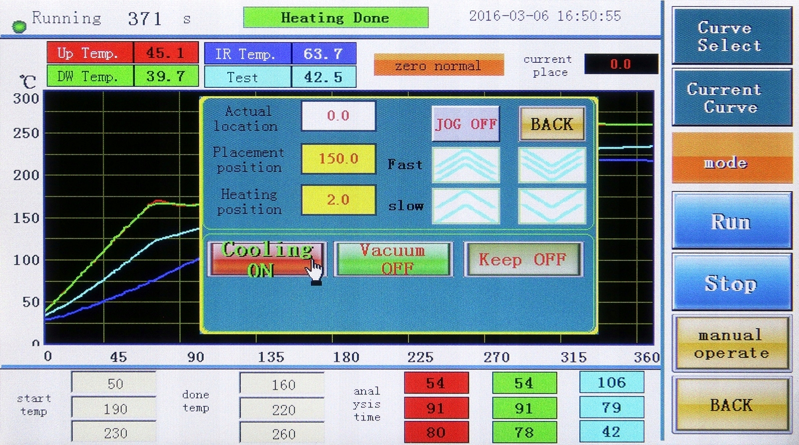 Proces lutowania programuje się z poziomu ekranu dotykowego tworząc dla danej specyfiki układu i PCB odpowiedni profil lutowniczy.
