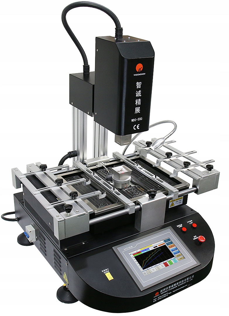 Zintegrowany system naprawy i wymiany układów WISDOMSHOW WDS-550 to profesjonalne i nowoczesne rozwiązanie do demontażu i montażu układów BGA, uBGA, CBGA, CCGA, CSP, QFN, MLF, PGA dla serwisów elektroniki użytkowej, medycznej, telekomunikacyjnej, wojskowej, samochodowej.