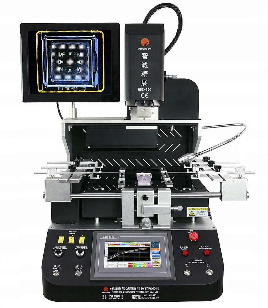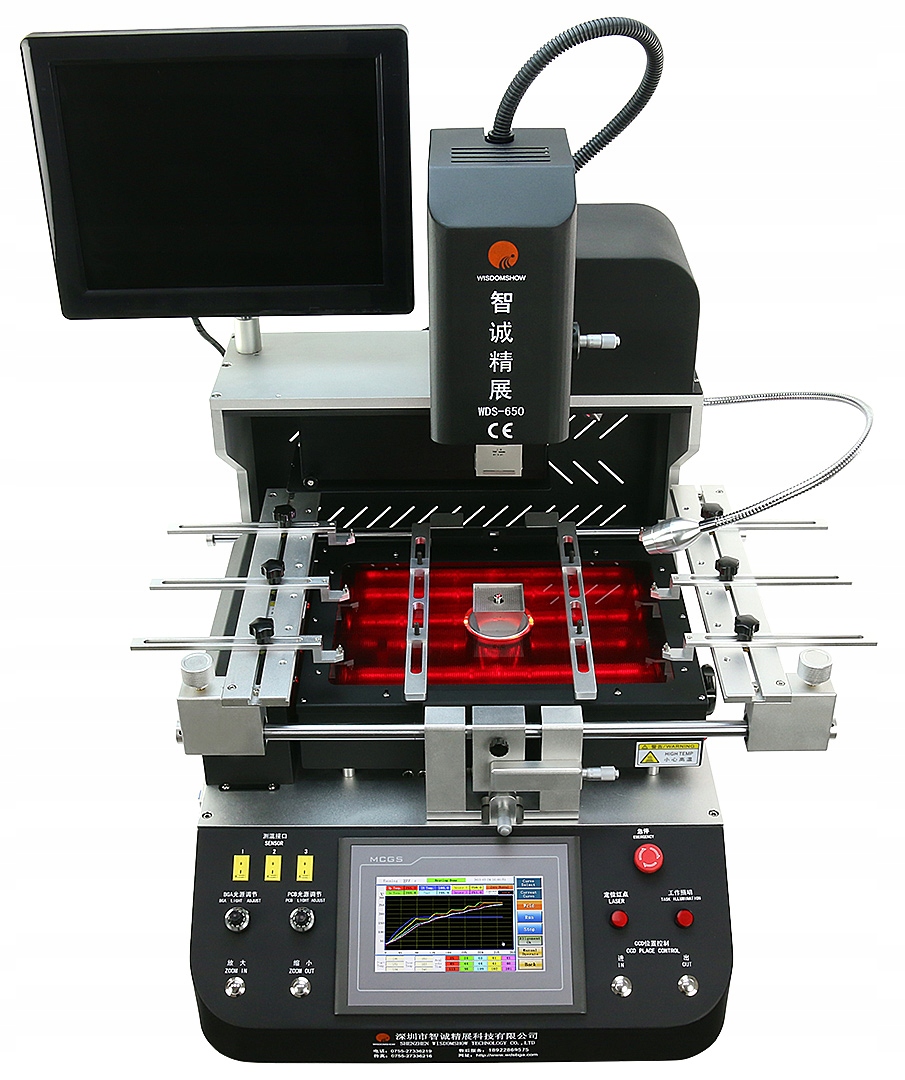 Zintegrowany system naprawy i wymiany układów WISDOMSHOW WDS-650 o łącznej mocy 6500W to bardzo wydajne, profesjonalne i nowoczesne rozwiązanie do demontażu i montażu układów BGA, uBGA, CBGA, CCGA, CSP, QFN, MLF, PGA dla serwisów elektroniki użytkowej, medycznej, telekomunikacyjnej, wojskowej, samochodowej i przemysłowej.