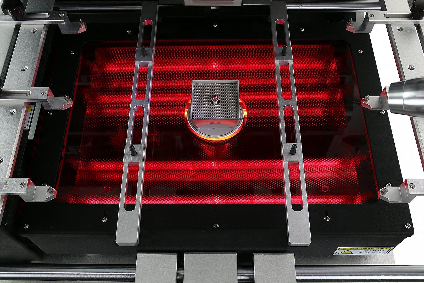 W celu zapewnienia najlepszego efektu lutowania w stacji zastosowano 3 niezależne strefy/powierzchnie grzewcze (górną, dolną i podgrzewacz PCB) których temperaturę można kontrolować i sterować osobno.