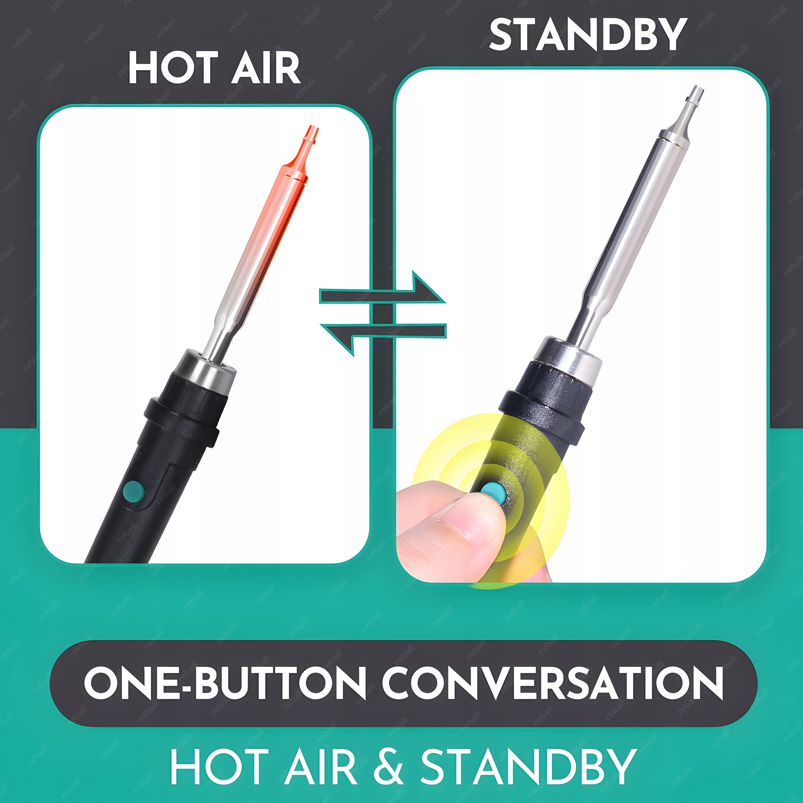 W tym modelu wprowadzono praktyczny dwufunkcyjny przycisk w kolbie lutowniczej: