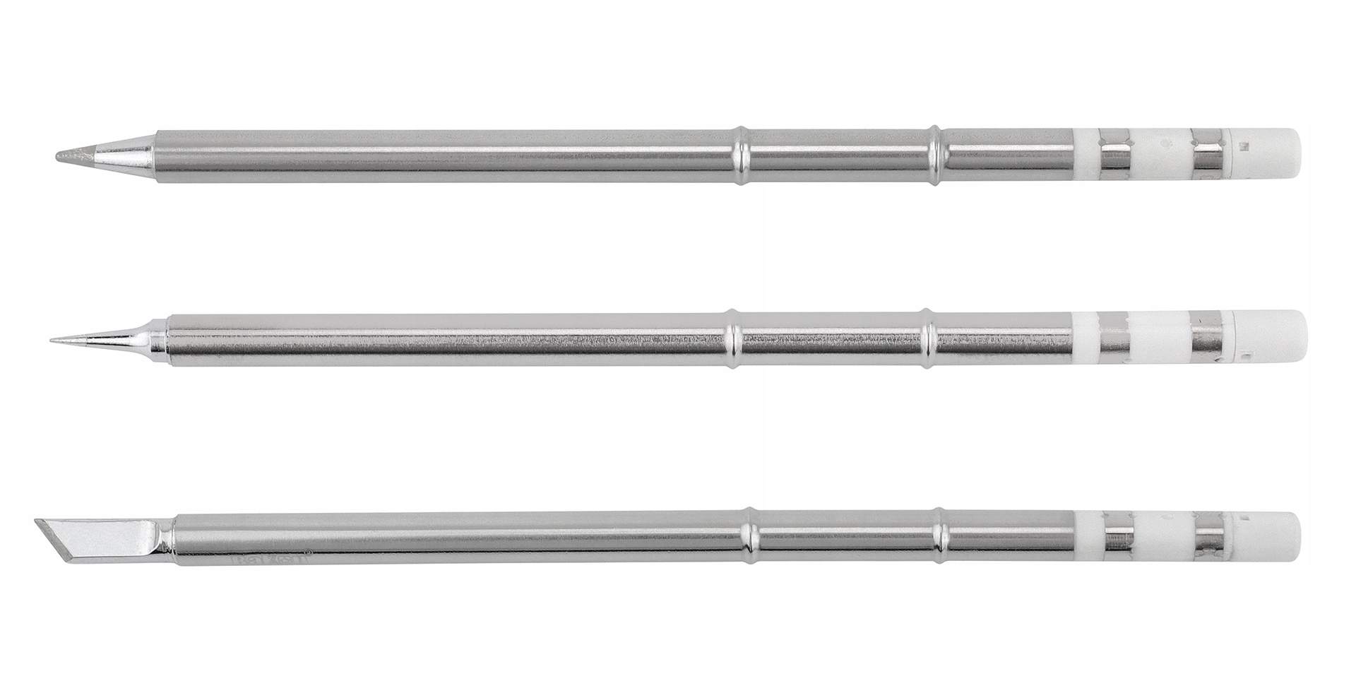 Poza uniwersalnym grotem T13-I który jest wyposażeniem standardowym każdej stacji lutowniczej w zestawi znajdują się również groty (od góry):