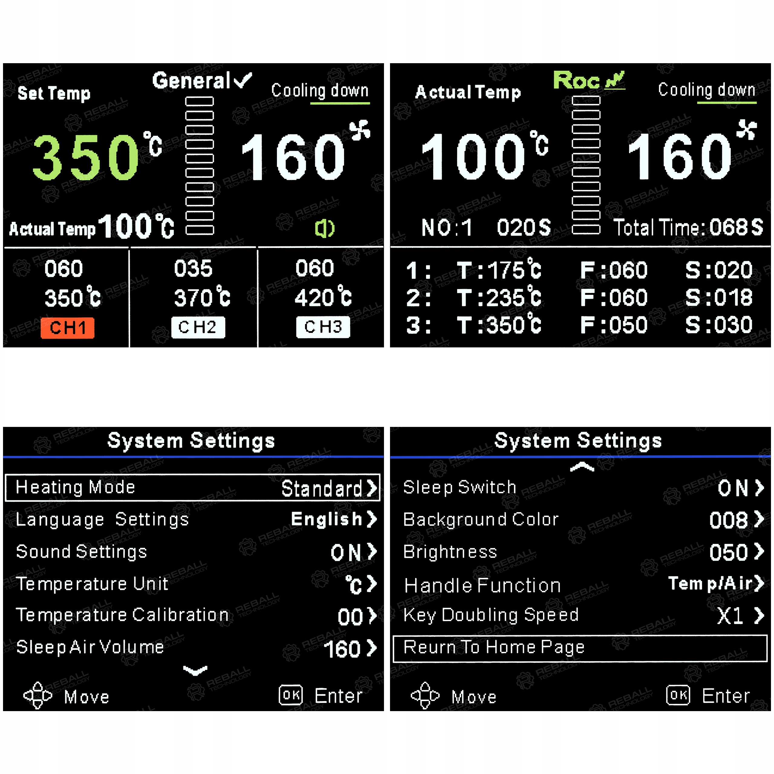 ✅ Tryb ROC oferuje automatyczny trzystopniowy proces lutowania z pełną kontrolą temperatury i nawiewu. Trzy profile które realizują się jeden po drugim.