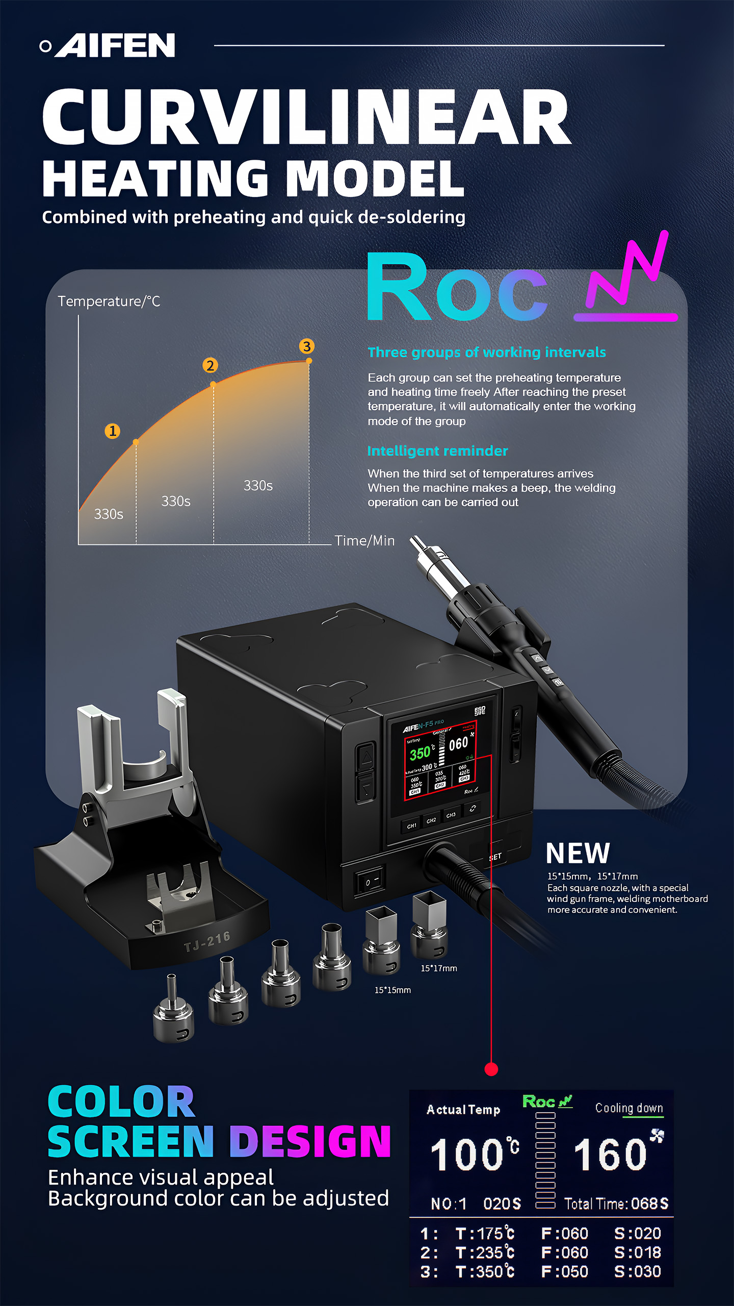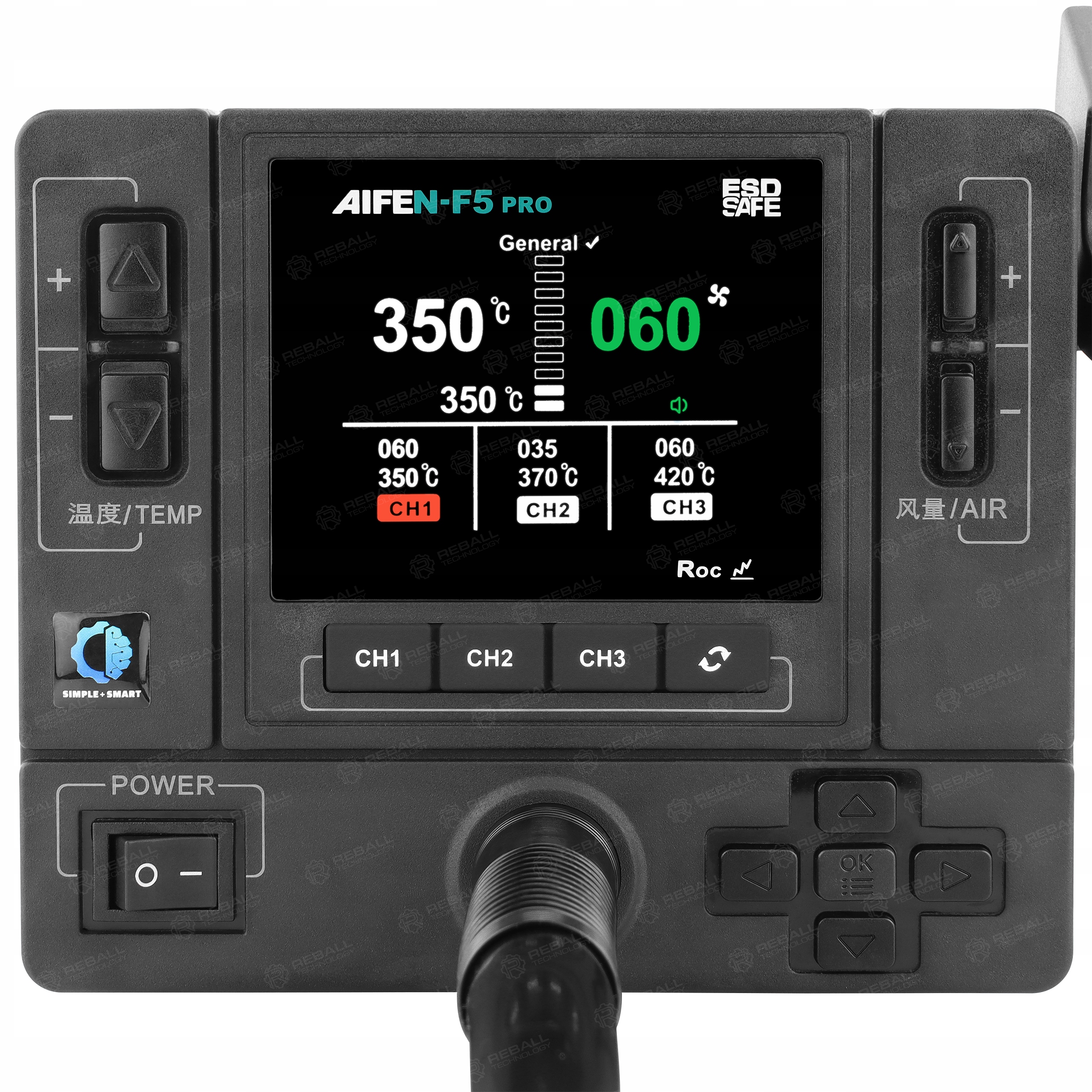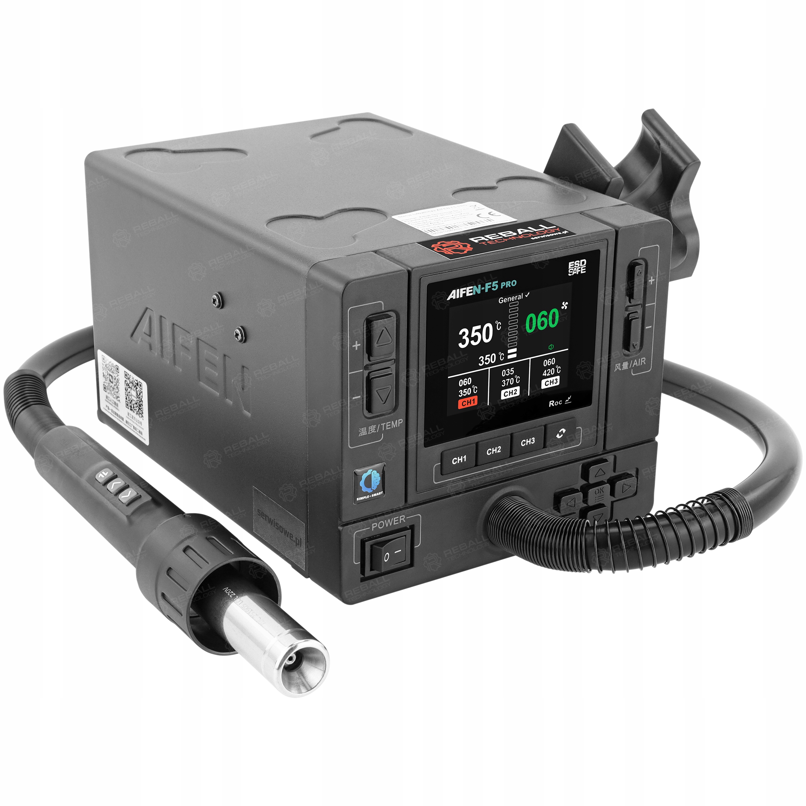 AIFEN F5 PRO o mocy 1000W ESD to profesjonalna stacja lutownicza HOTAIR z nadmuchem gorącego powietrza i przepływie powietrza aż 1-160l/min.