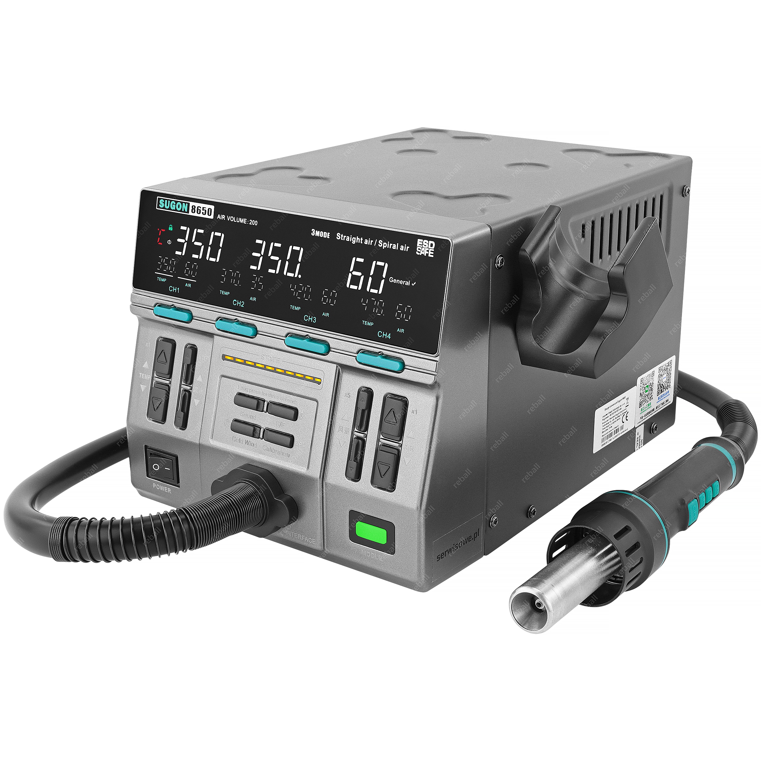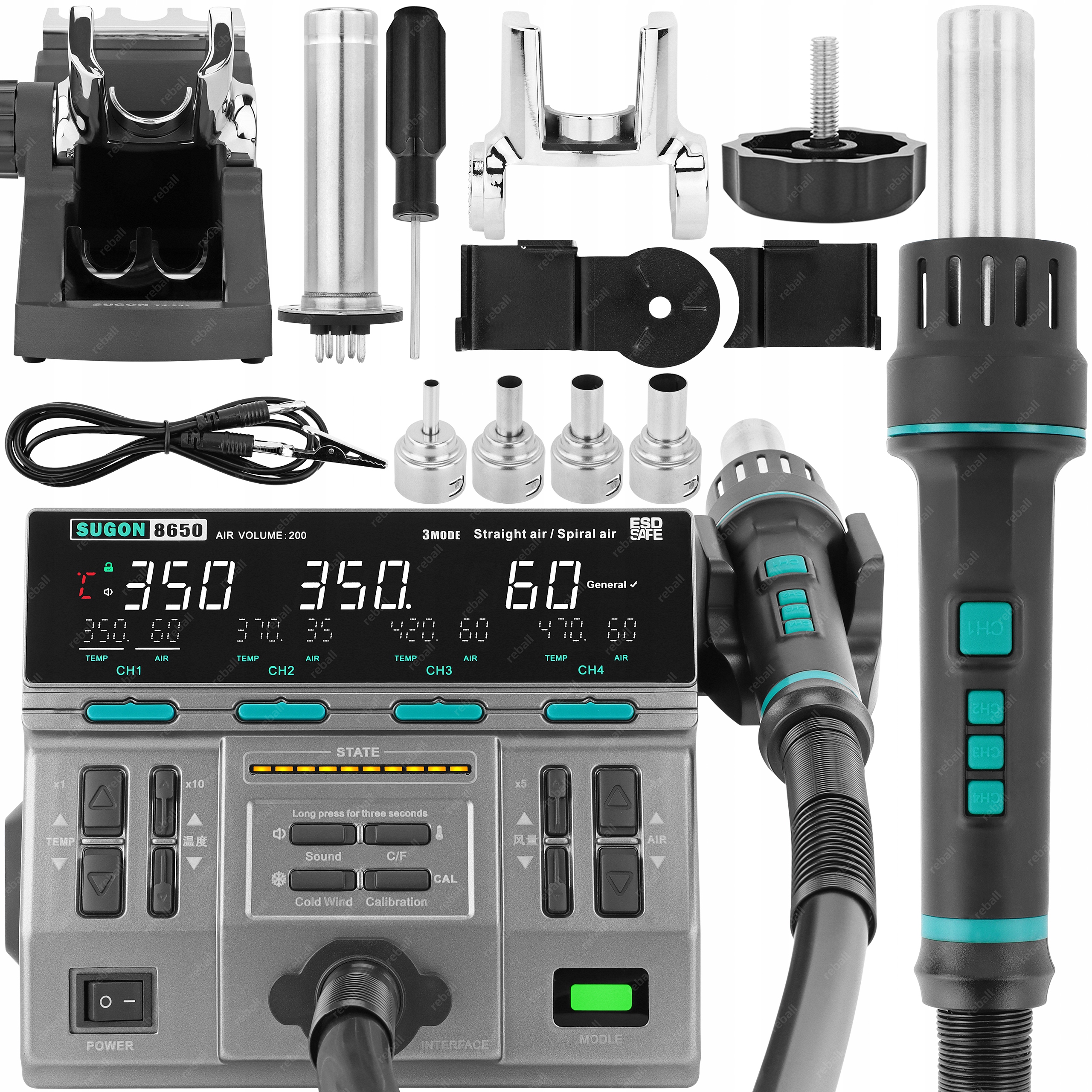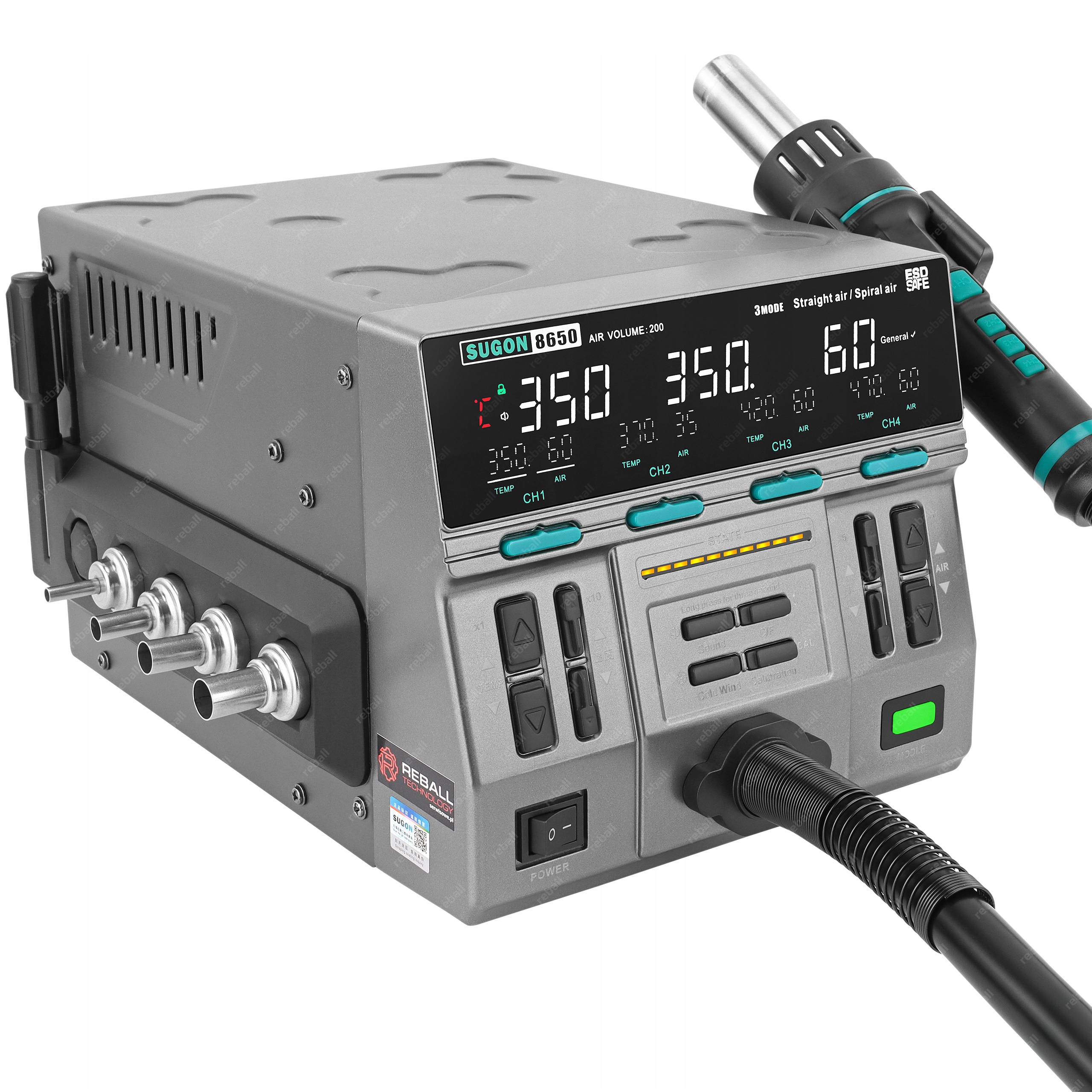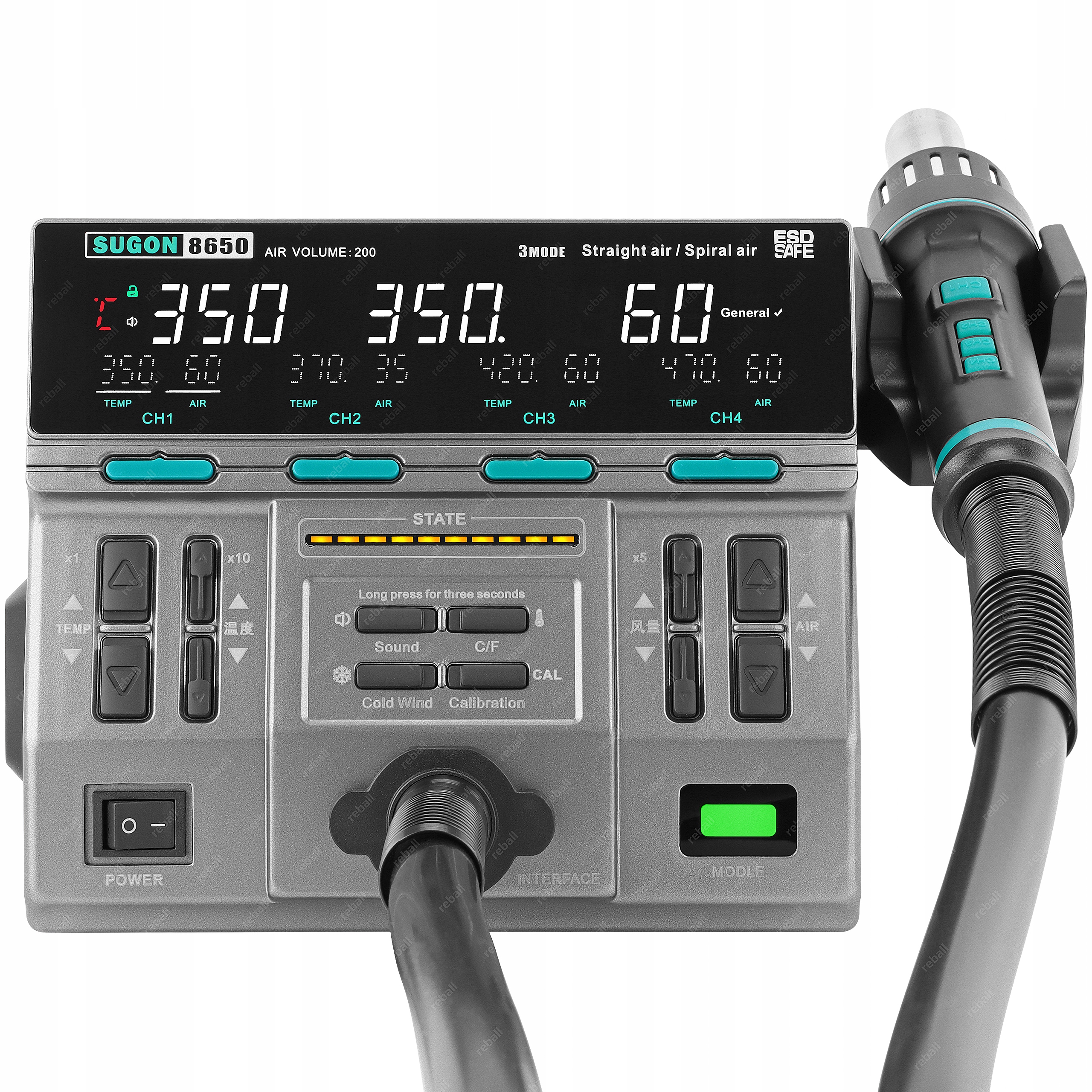 SUGON 3MODE 8650 1300W to obecnie najnowocześniejsza stacja lutownicza HOT AIR z nadmuchem gorącego powietrza. W bardzo szerokim zakresie spełniająca wszystkie wymagania stawiane stacjom tego typu na rynku.