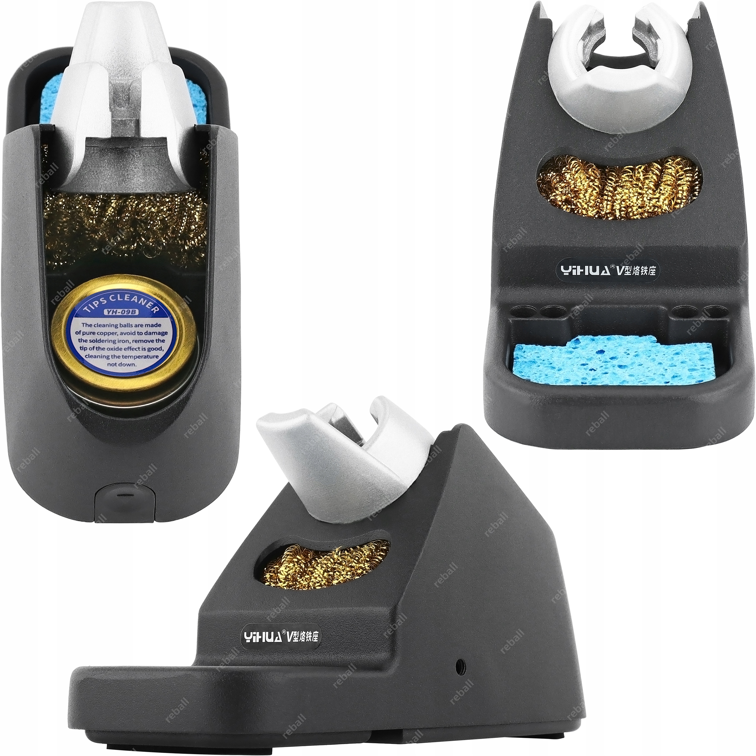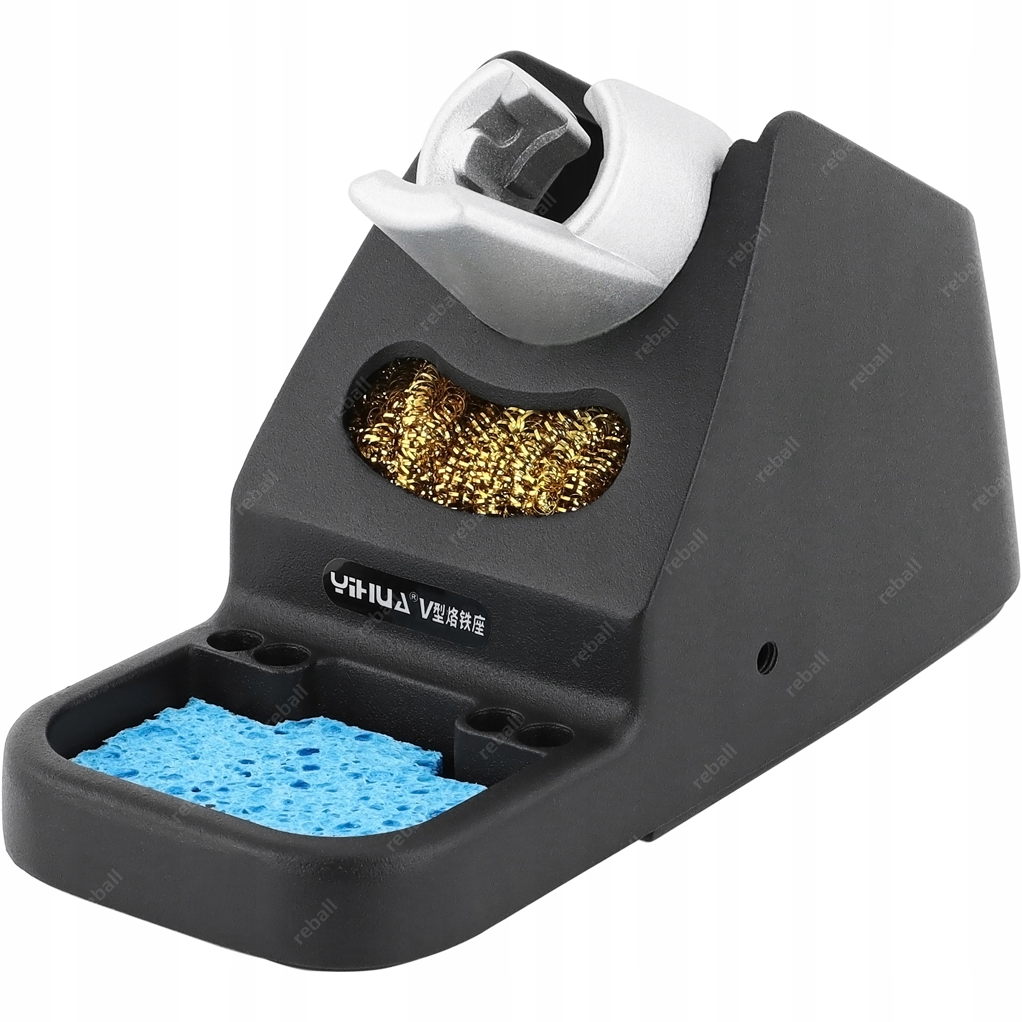 Stacja lutownicza Yihua 995D+ wyposażona została w rozbudowaną podstawkę pod kolbę lutowniczą. Posiada ona zintegrowany system do czyszczenia grotów po procesach lutowniczych. Jej budowa pozwala na umiejscowienie czyścika do grotów, gąbki do ich czyszczenia oraz środek do czyszczenia grotów.