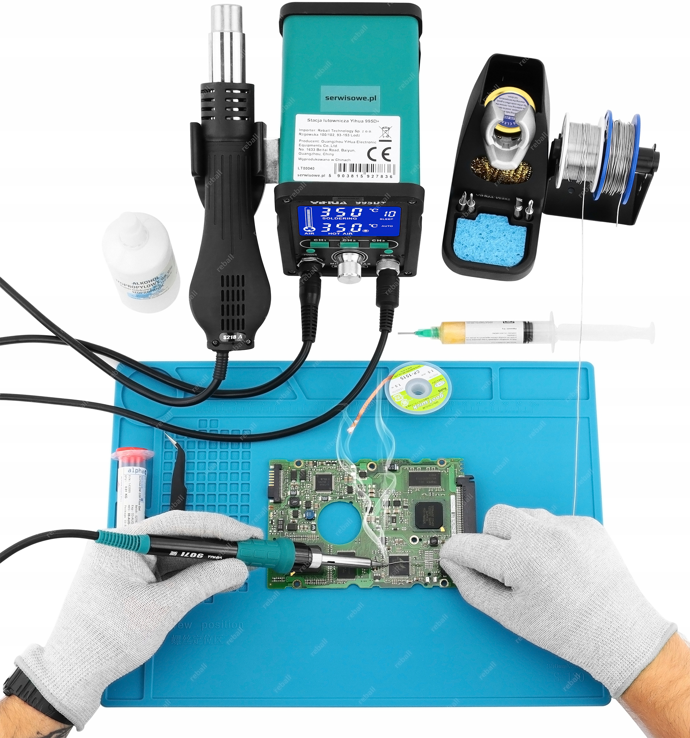 Dzięki podajnikowi cyny oraz praktycznemu i ergonomicznemu chwytakowi jesteśmy w stanie przeprowadzić niemal każdy proces serwisowania elektroniki.