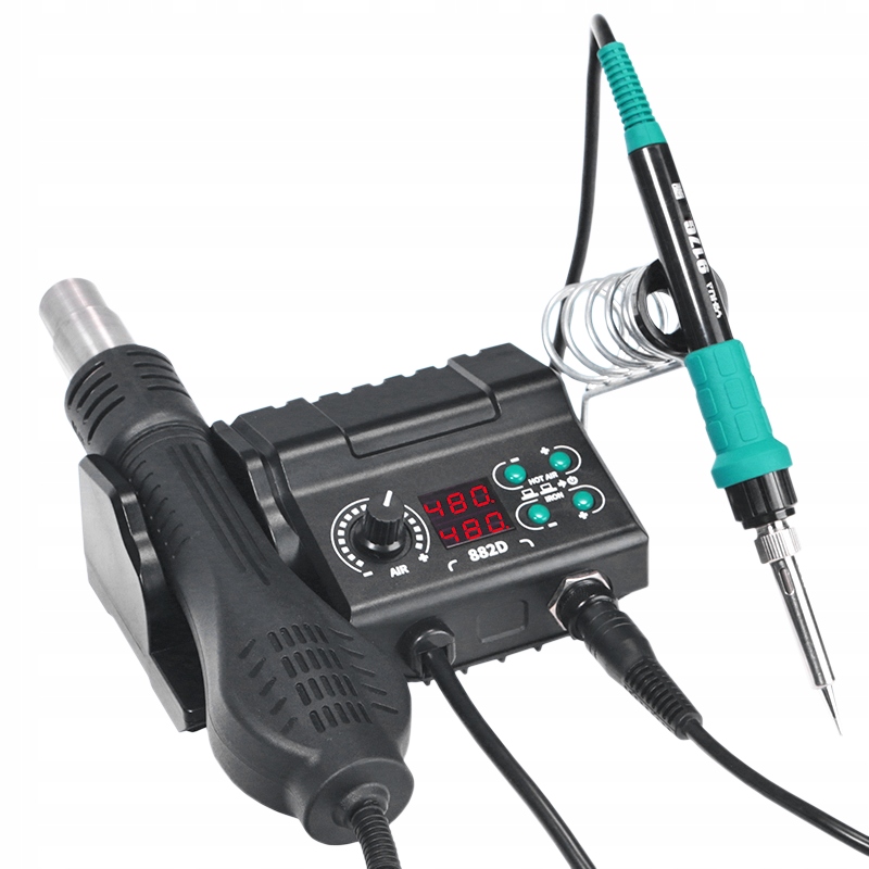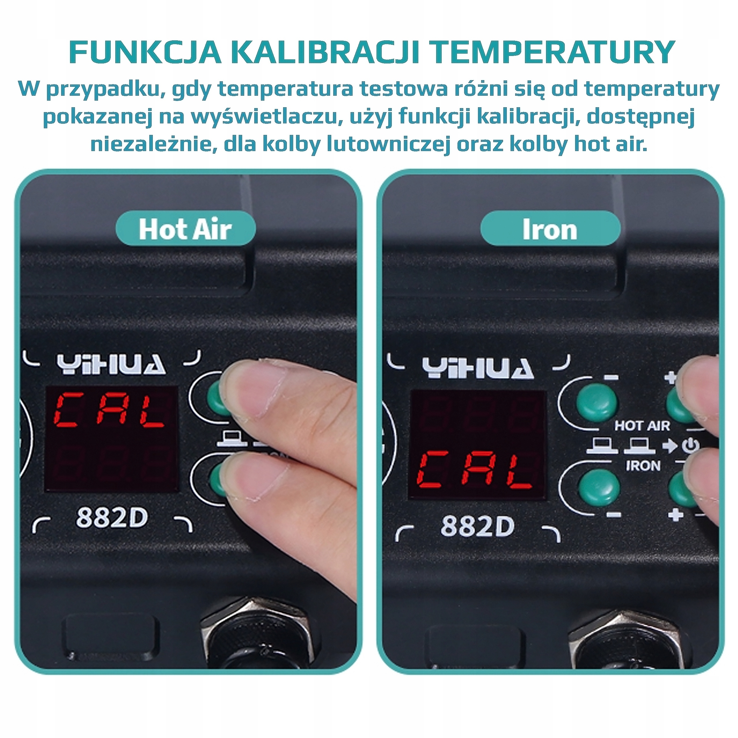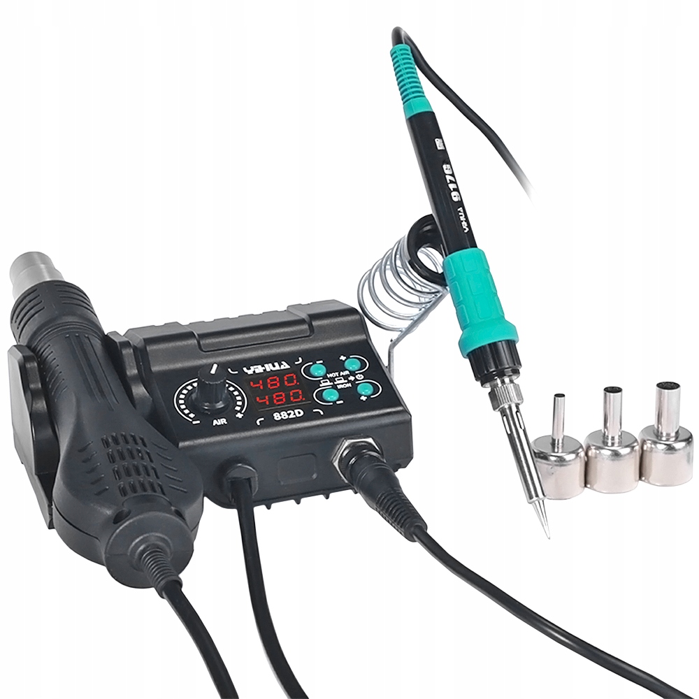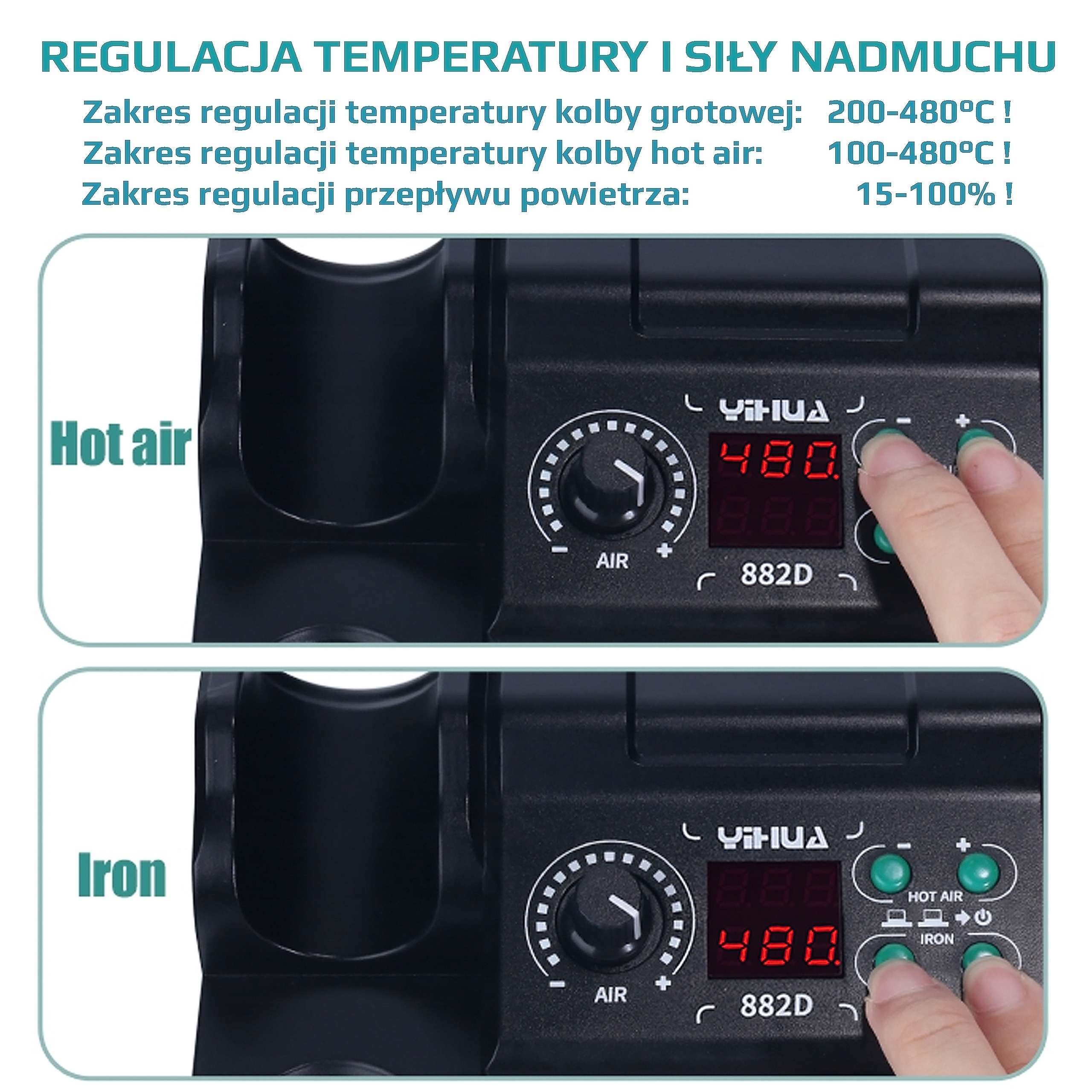 Stacja lutownicza 2w1 YIHUA 882D posiada maksymalny zakres temperatury 480°C dla obu kolb.