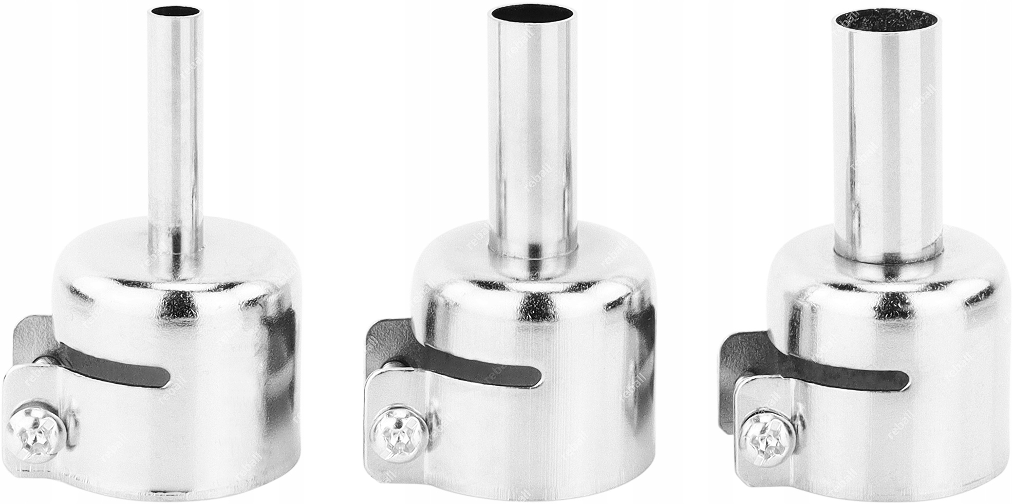 W skład sprzedawanej stacji lutowniczej Yihua 959D-I wchodzą 3 wymienne zapasowe dysze o średnicy montażowej 22mm: